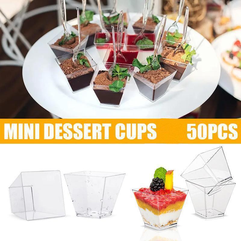 50PCS Mini Cubes Square Plastic Dessert Cups 60ml Strong Cake Cup