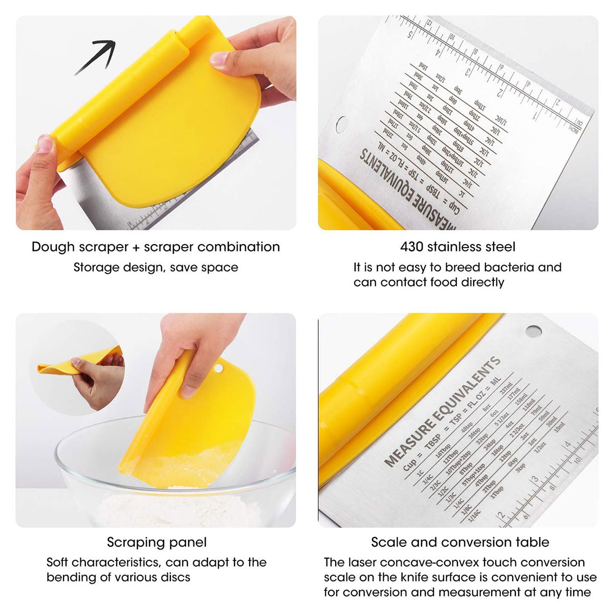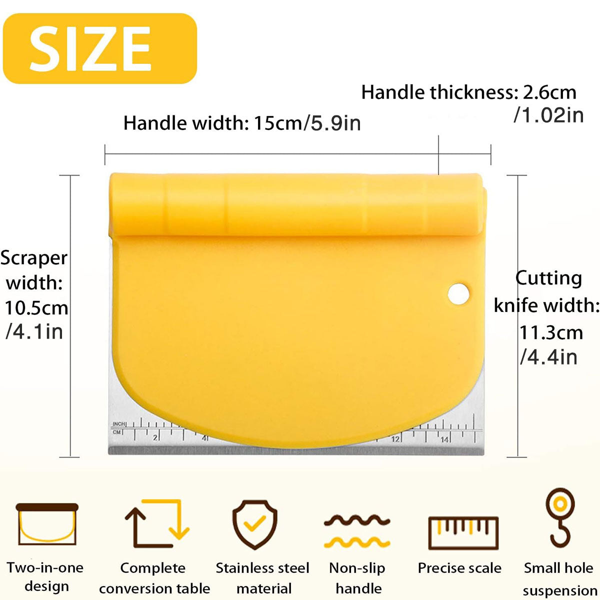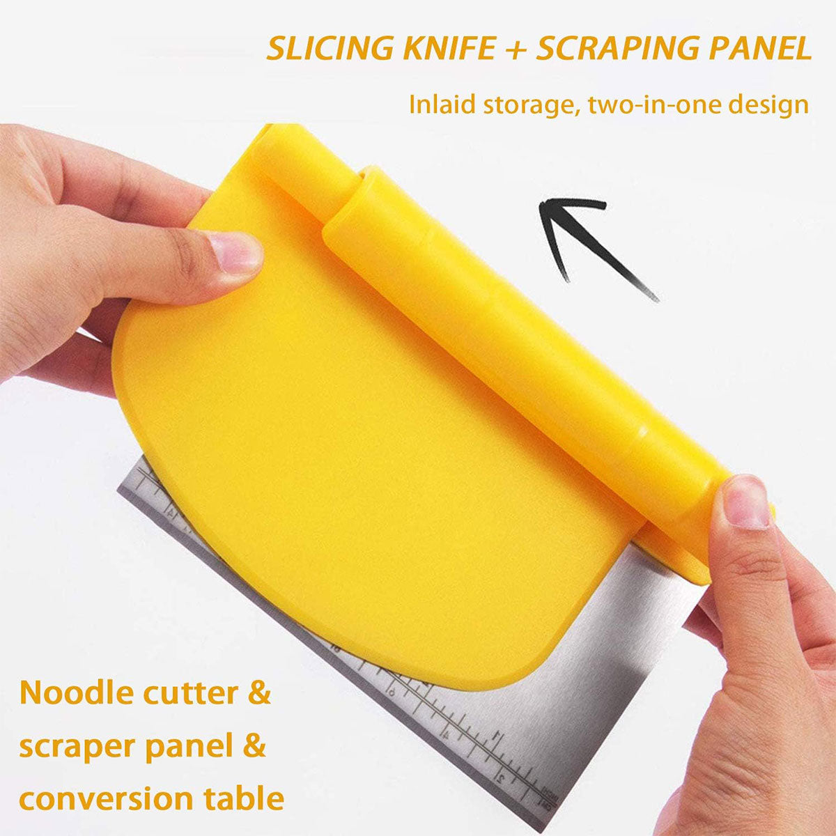 Stainless Steel Bench Scraper Dough Cutter with Scale and Roll Handle Baking Tool