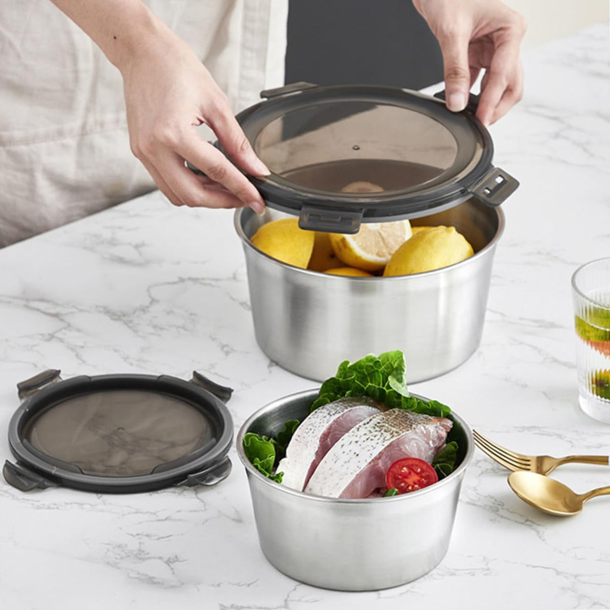 Stainless Steel Box Set 4pcs Sealed Lunch Food Container Refrigerator Use