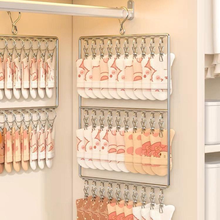 Stainless Steel Drying Rack Multi Function Windproof Underwear Clip Sock Hanger