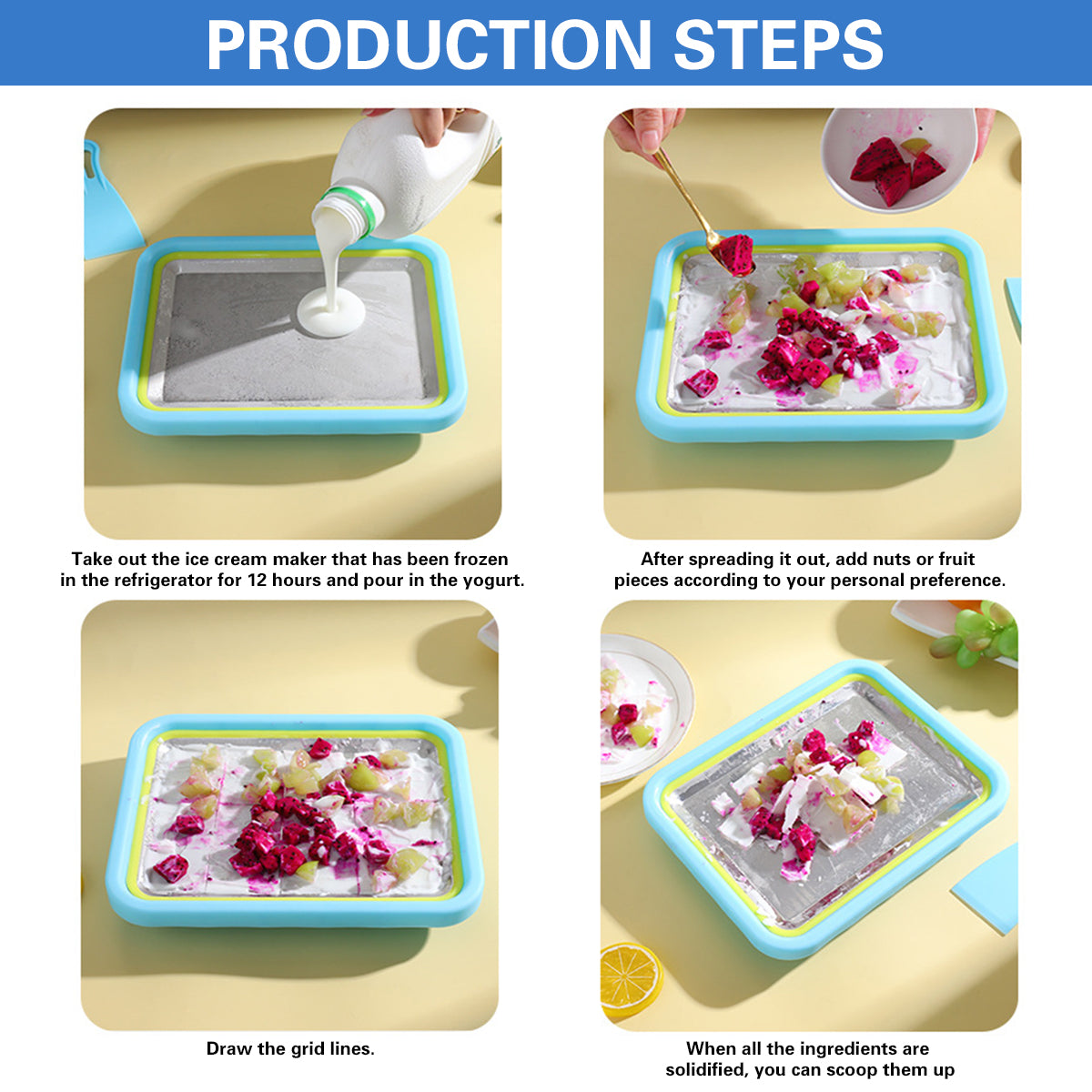 Stainless Steel Home Small Ice Frying Yogurt Tray Homemade Dessert Fruit Snack