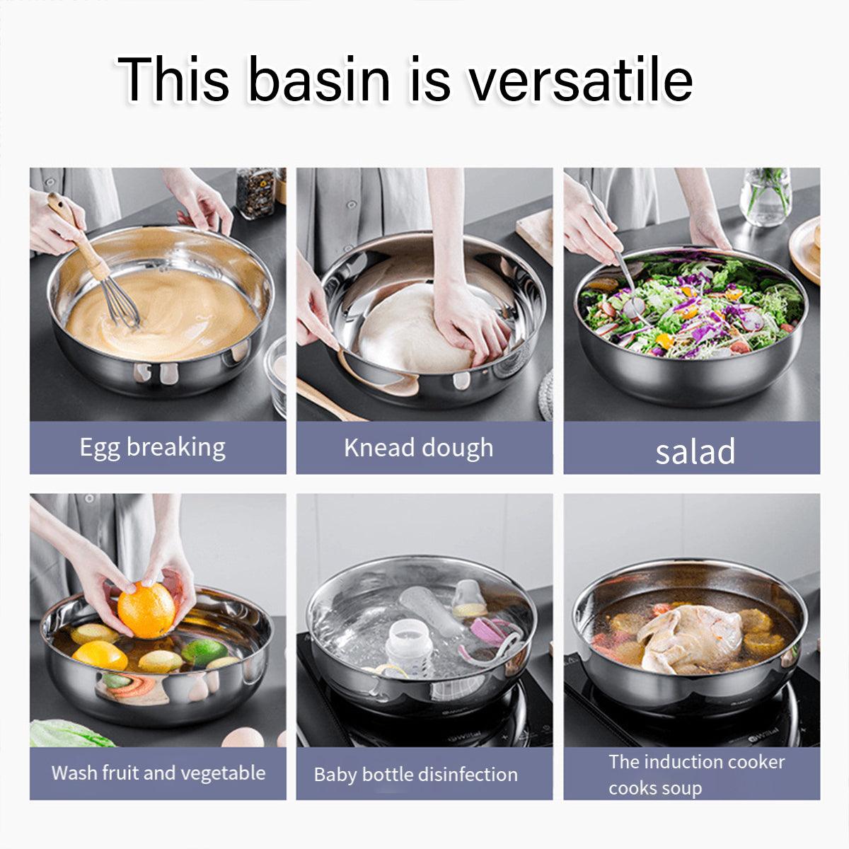 Stainless Steel Kitchen Kneading Bowl Durable Household Baking Cooking Basin