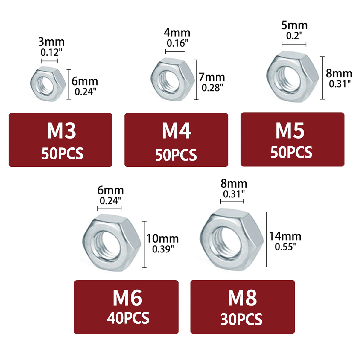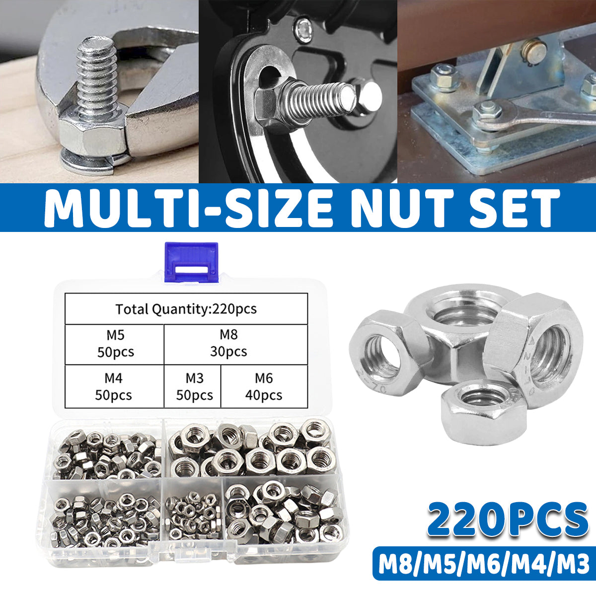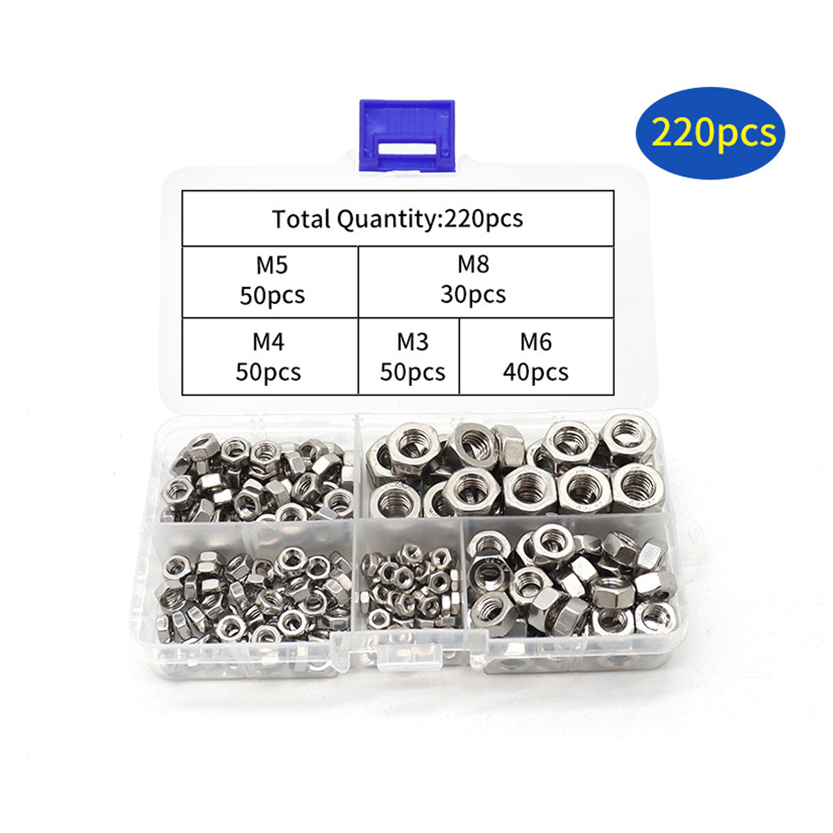 Stainless Steel Nuts 220pcs Nut Sets Hardware Fasteners Assortment Kit Nuts
