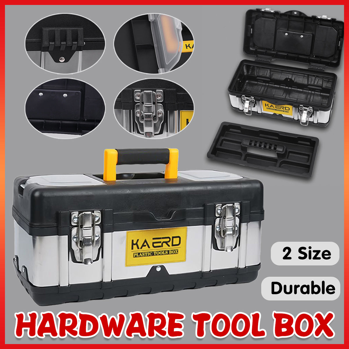 Stainless Steel Toolbox Plastic Storage Box Portable Car Hardware Organizer Case