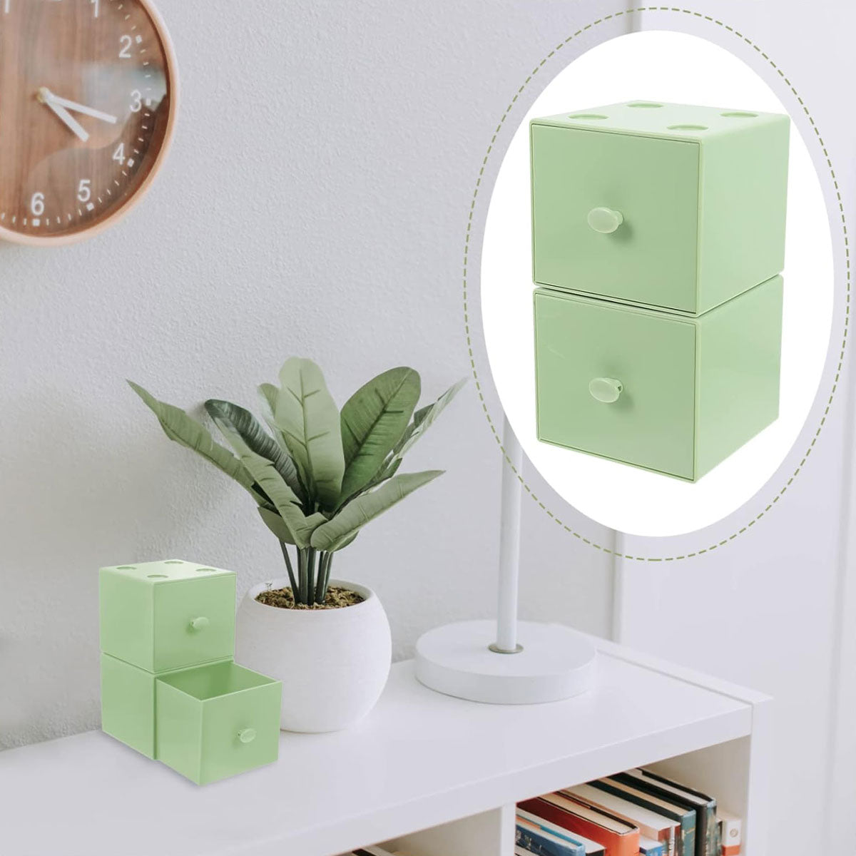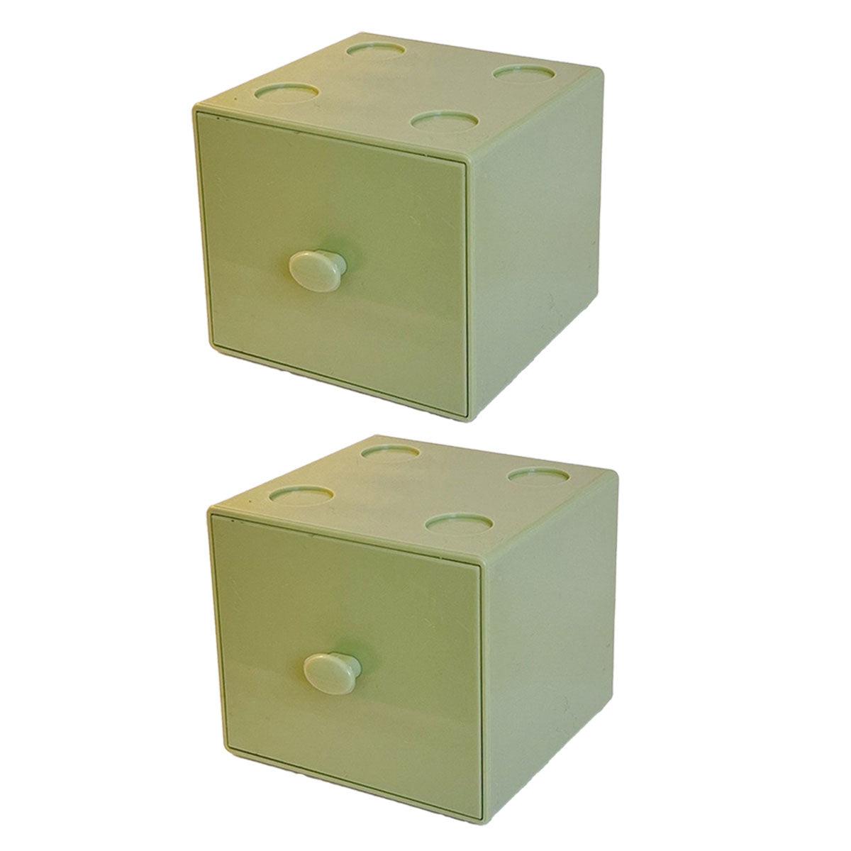 Storage Box 2PCS Desktop Square Stackable Drawers Organizer for Office Home