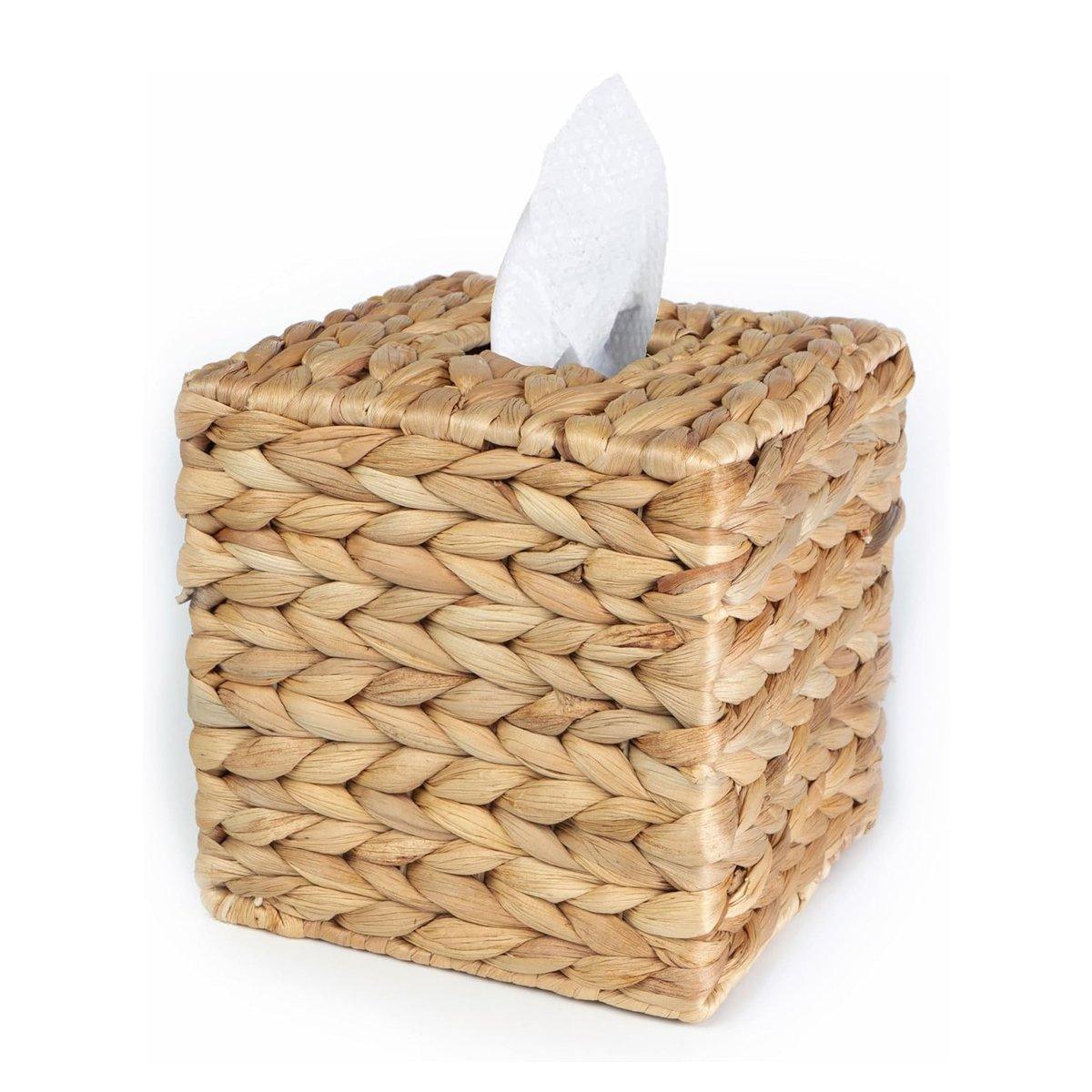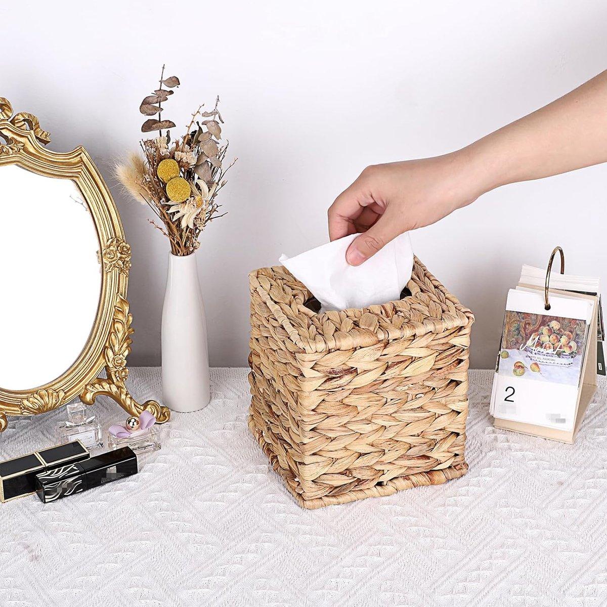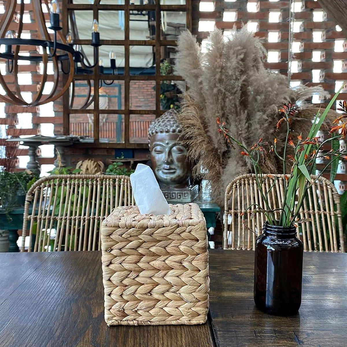 Straw Woven Tissue Box Rustic Style Extractable Tissue Drawer Desktop Organizer