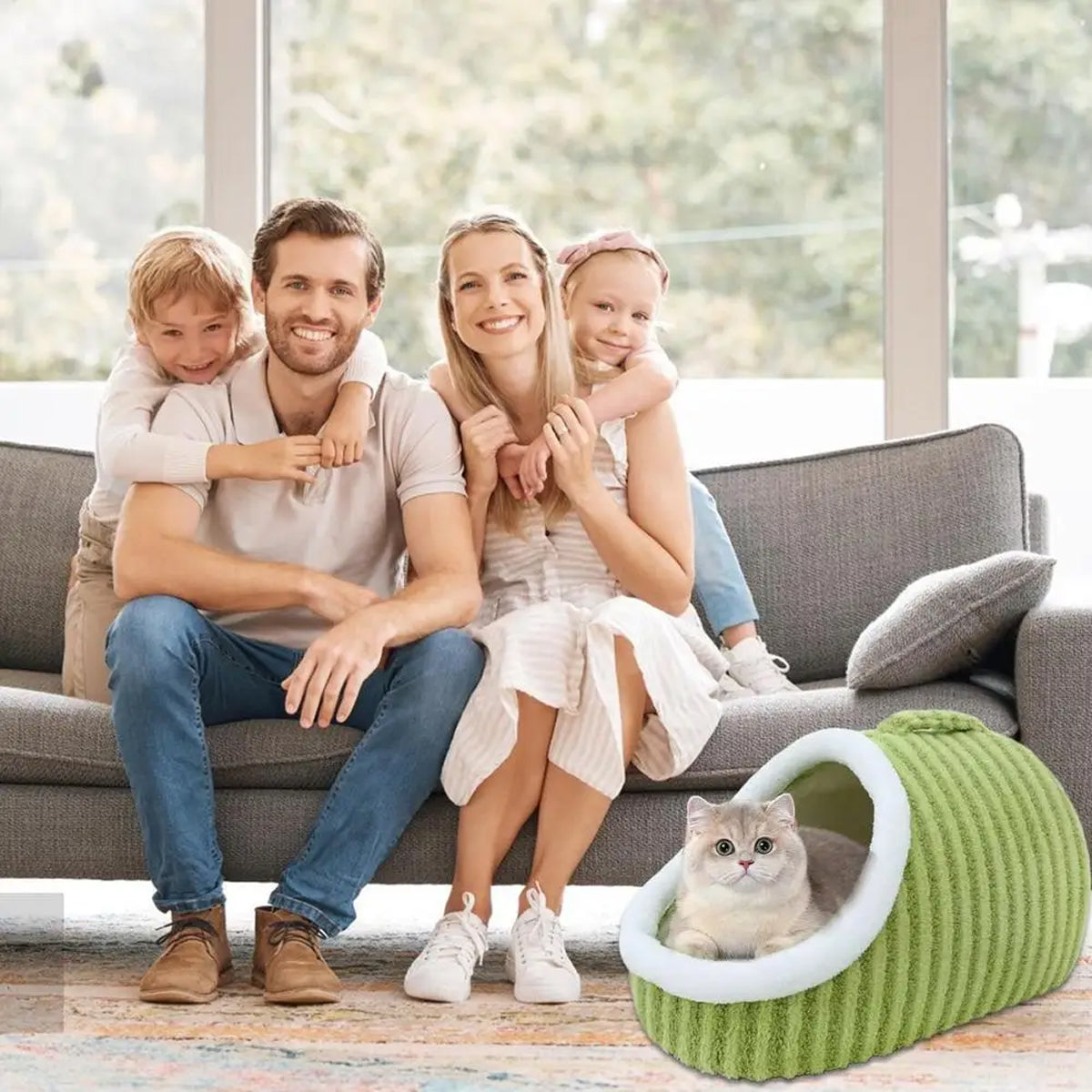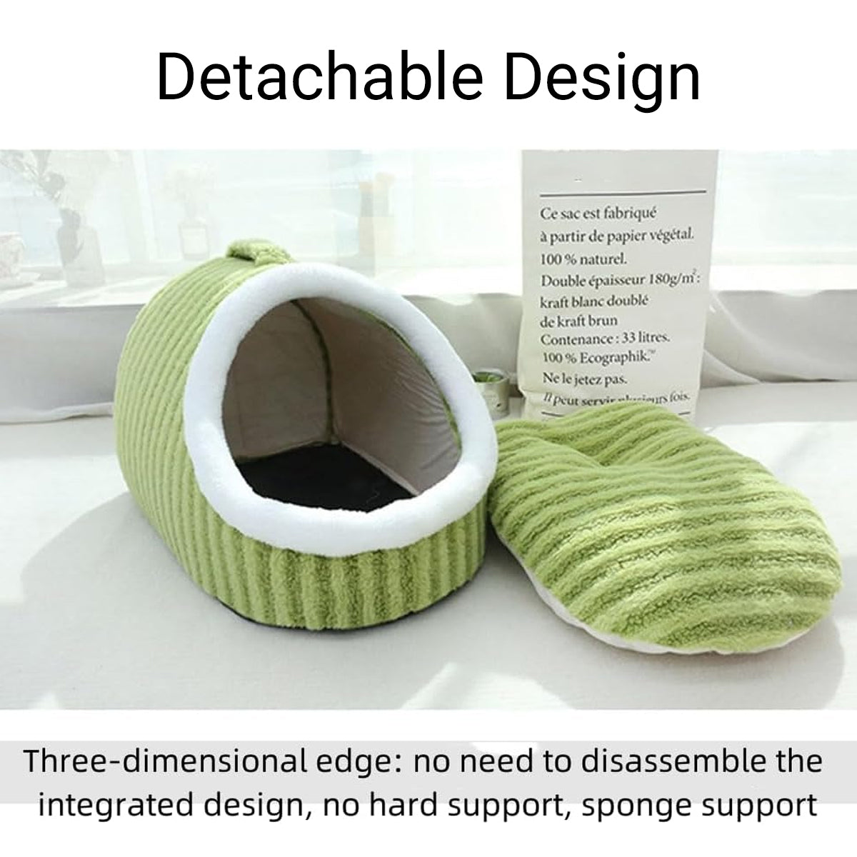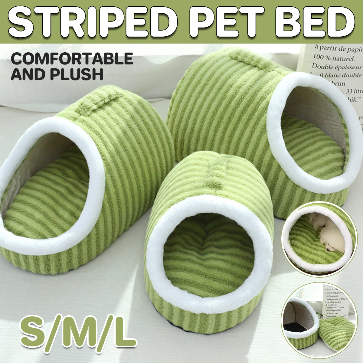 Striped Pet Bed Warm Soft Cat Dog Cave Nest Thickened Cozy Indoor Sleeping