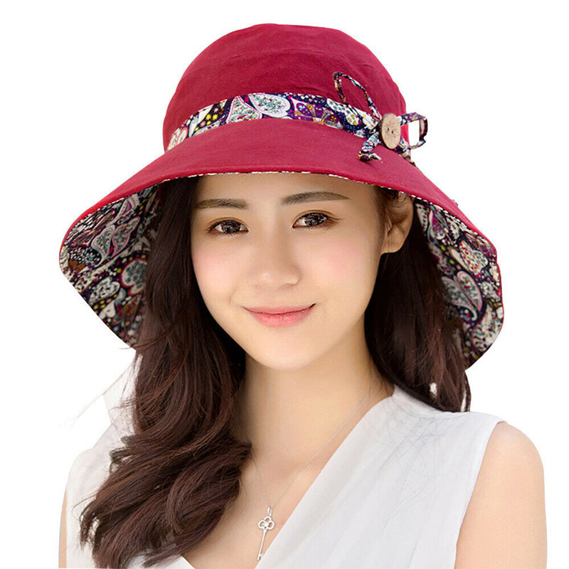 Wide Brim Sun Hat for Women Foldable Floppy Beach Cap with Bow Travel Style