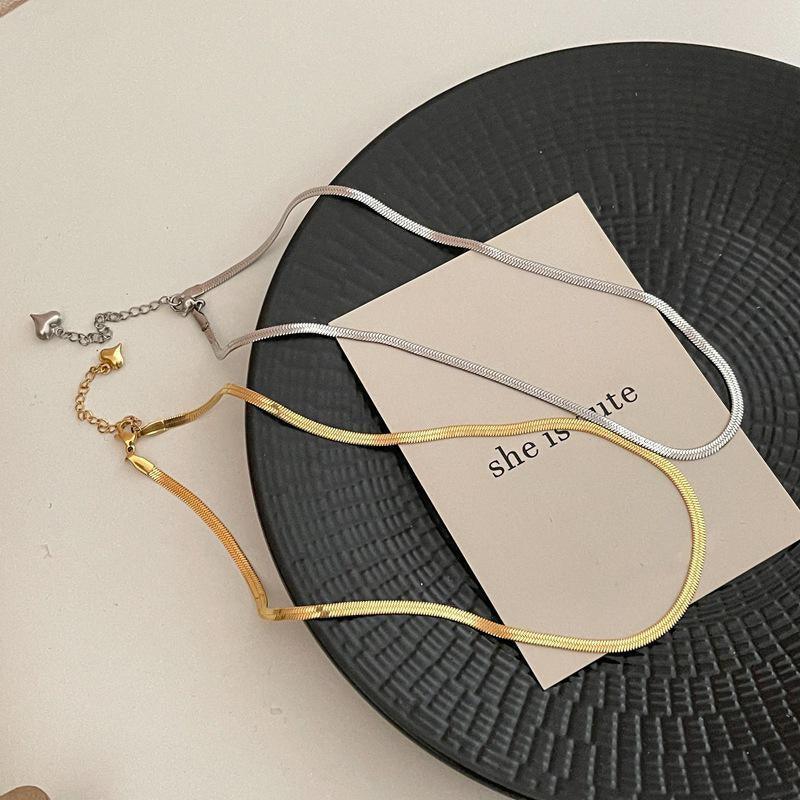 Titanium Steel Flat Snake Bone Necklace Chain Choker For Men Women Jewelry Gifts