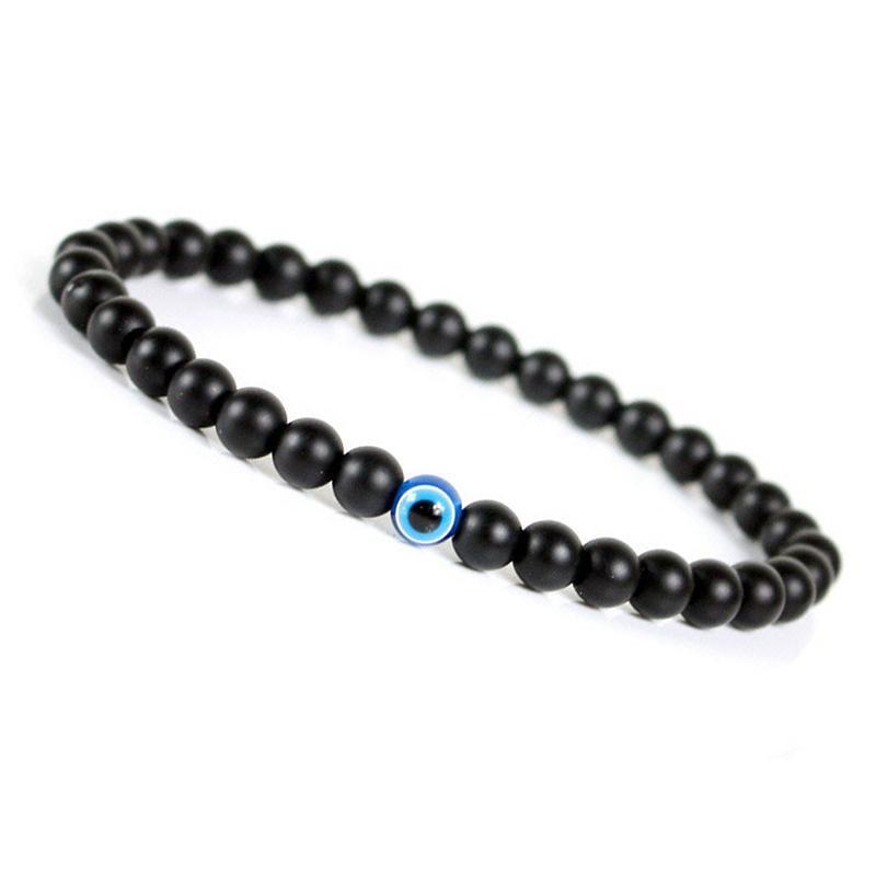 Turkish Greek Evil Eye Bracelet 6mm Elastic Cord Black Bead Handmade Unisex