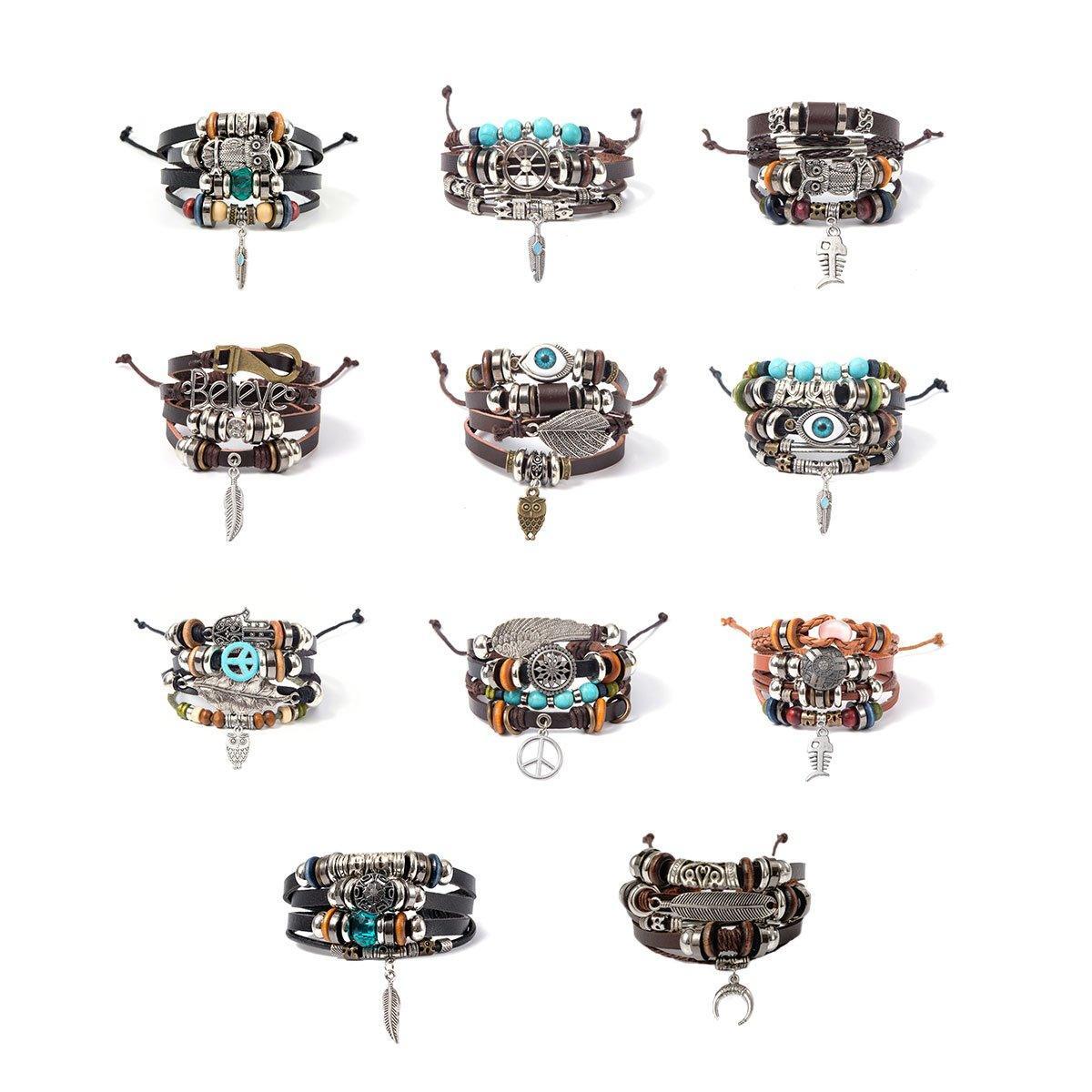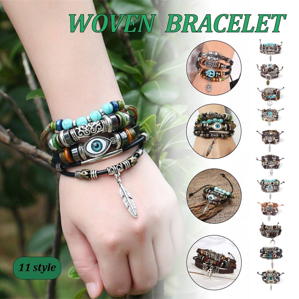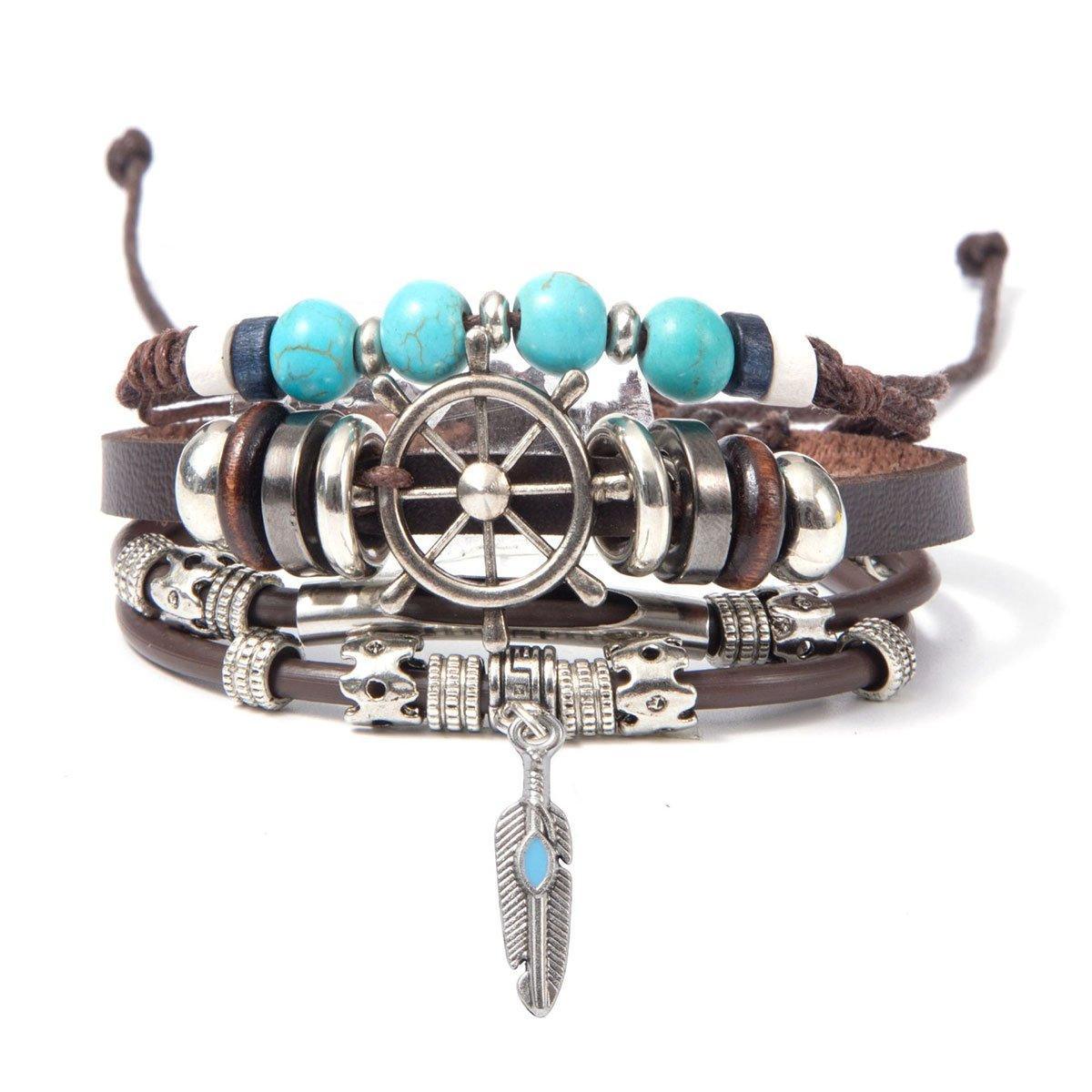 Turquoise Woven Leather Multi Layered Beaded Bracelet with Wood Beads Women