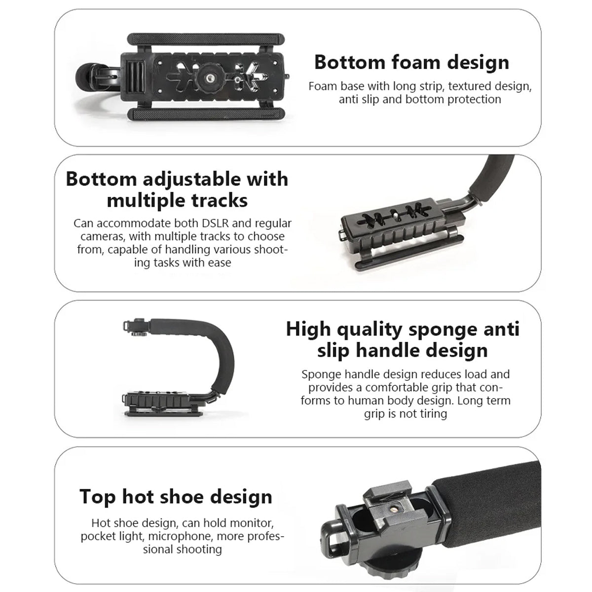 U Shaped Camera Stabilizer Rig For DSLR Video Shooting with Flash Mount Hot Shoe