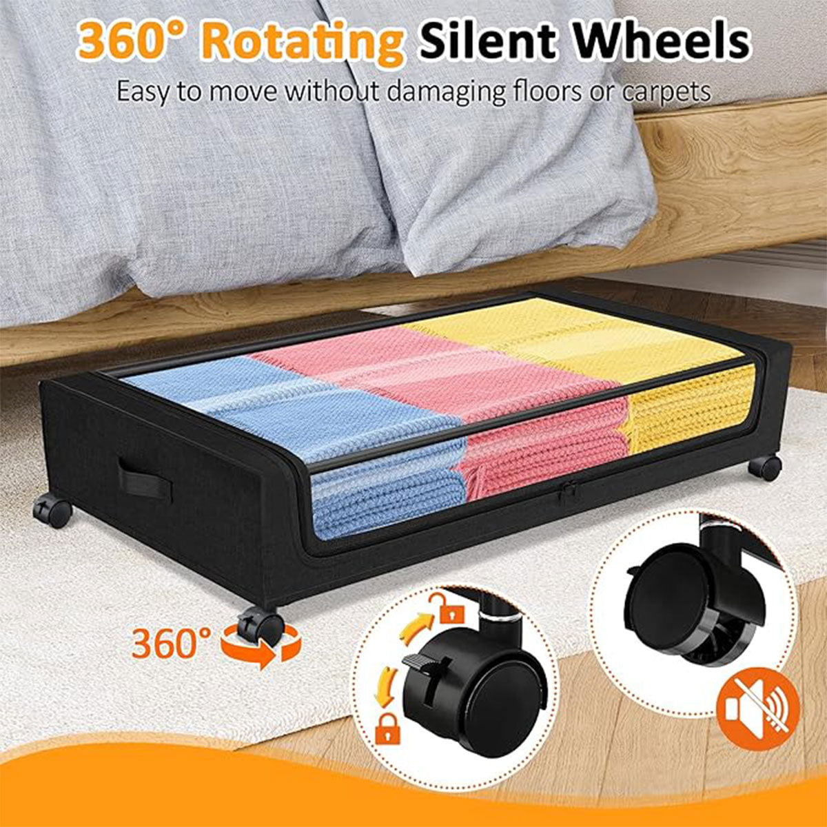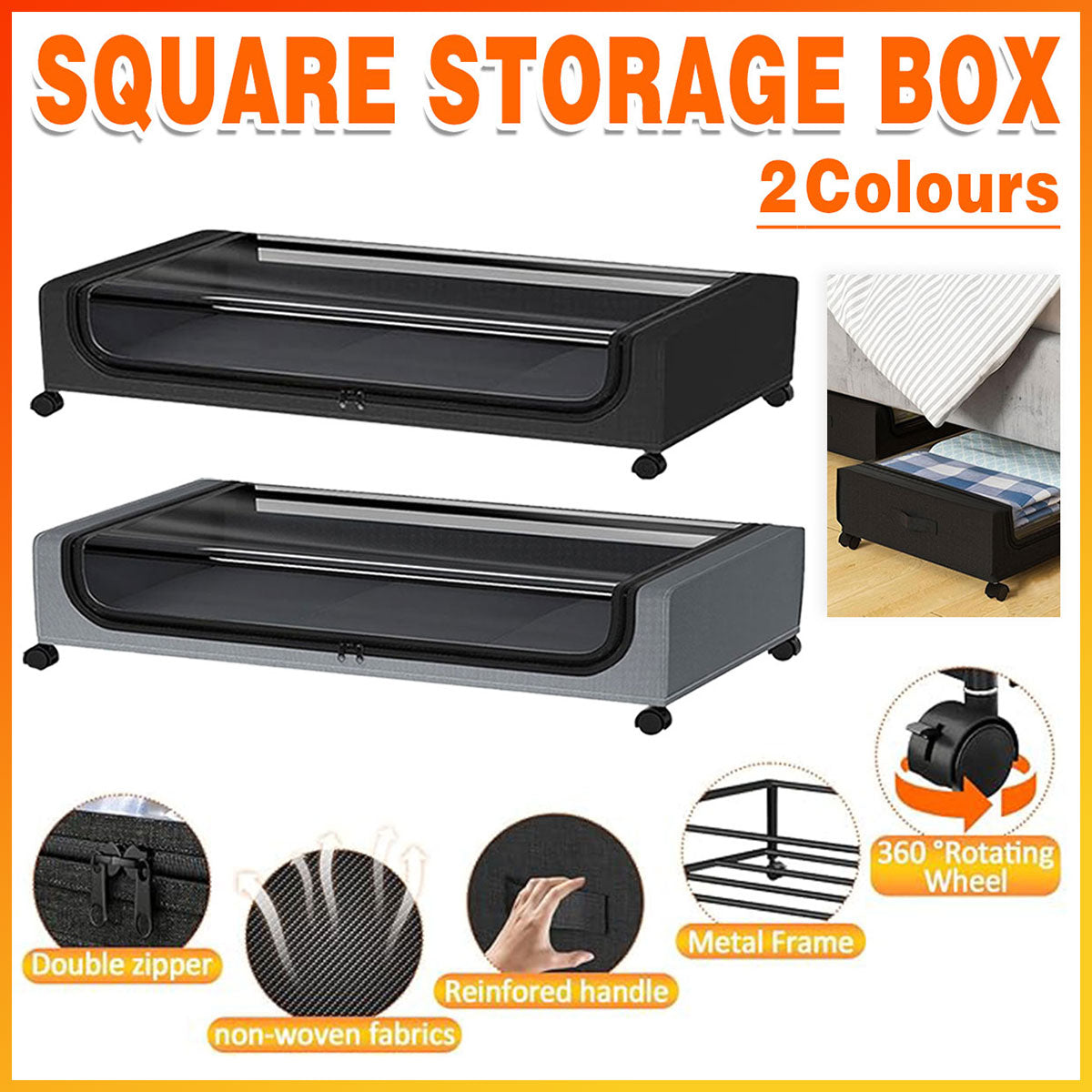 Under Bed Storage Rack Square Design with Wheels Rolling Trolley Box for Home