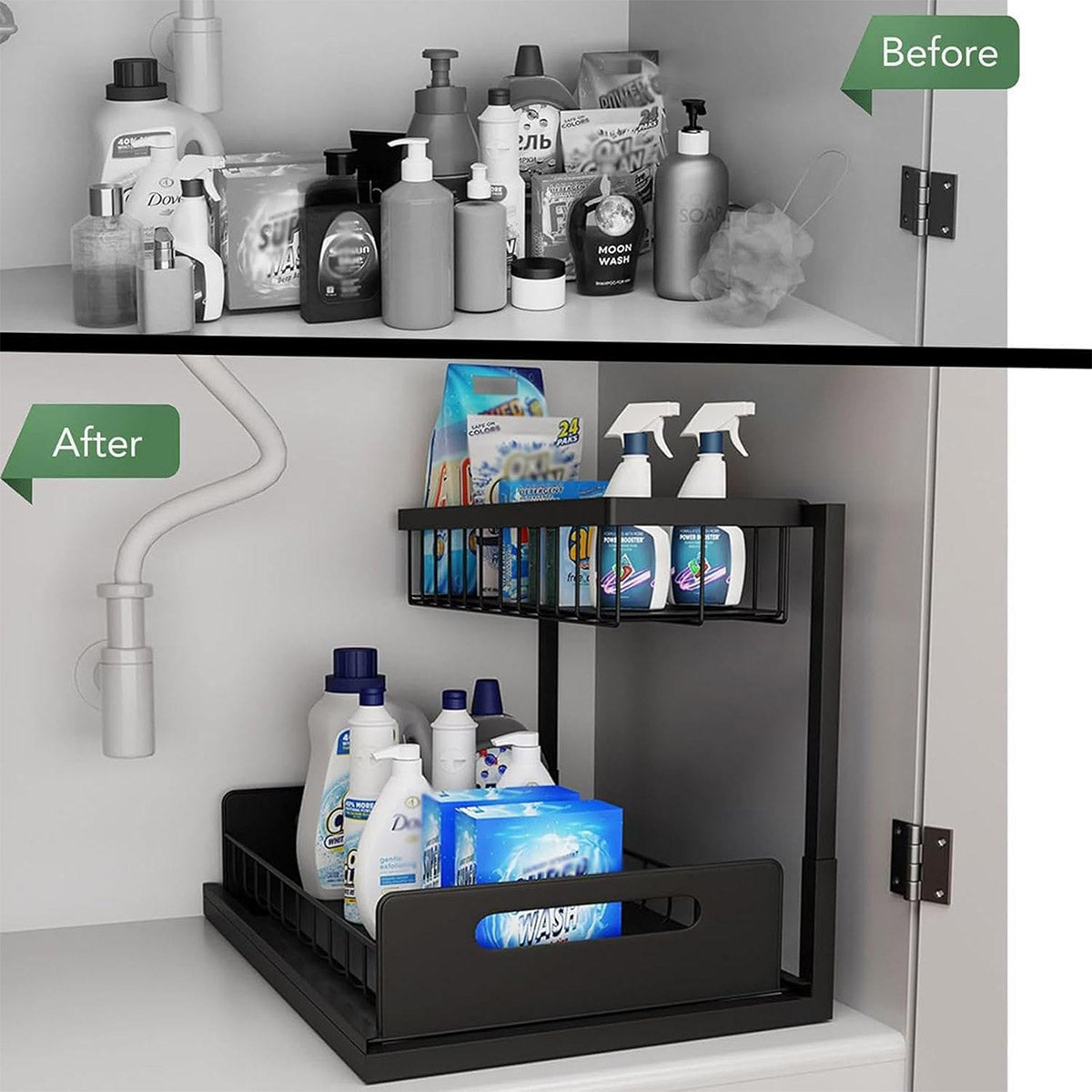Under Sink Storage Rack Kitchen Cabinet Organizer Adjustable Shelving Unit Home
