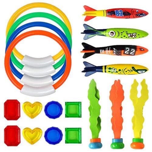 19PCS Underwater Pool Diving Toys Set with Rings Torpedoes Gem Treasure Games