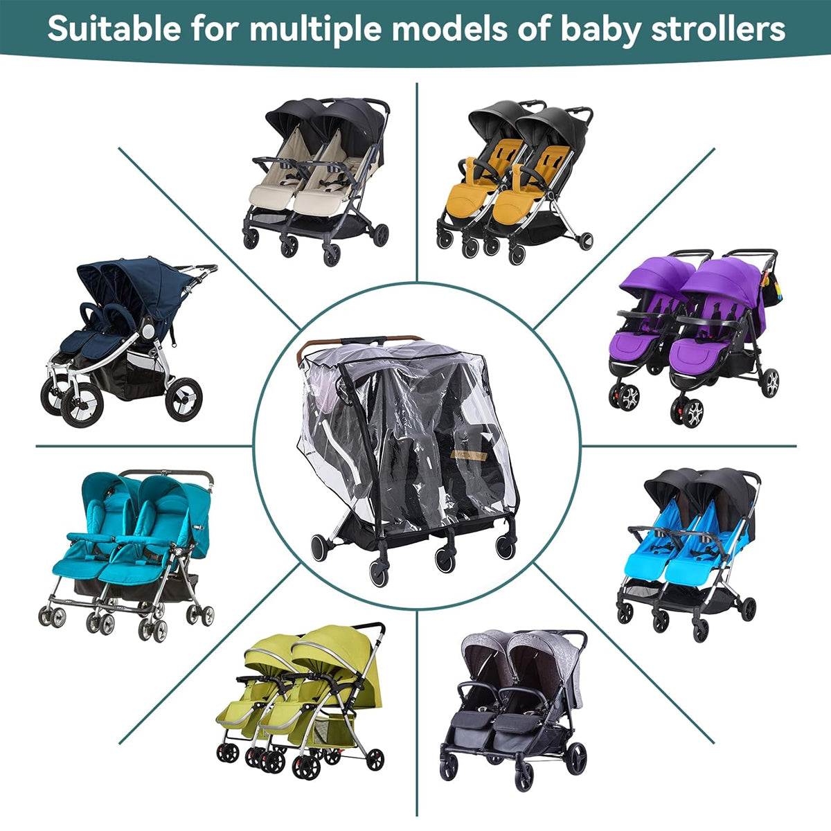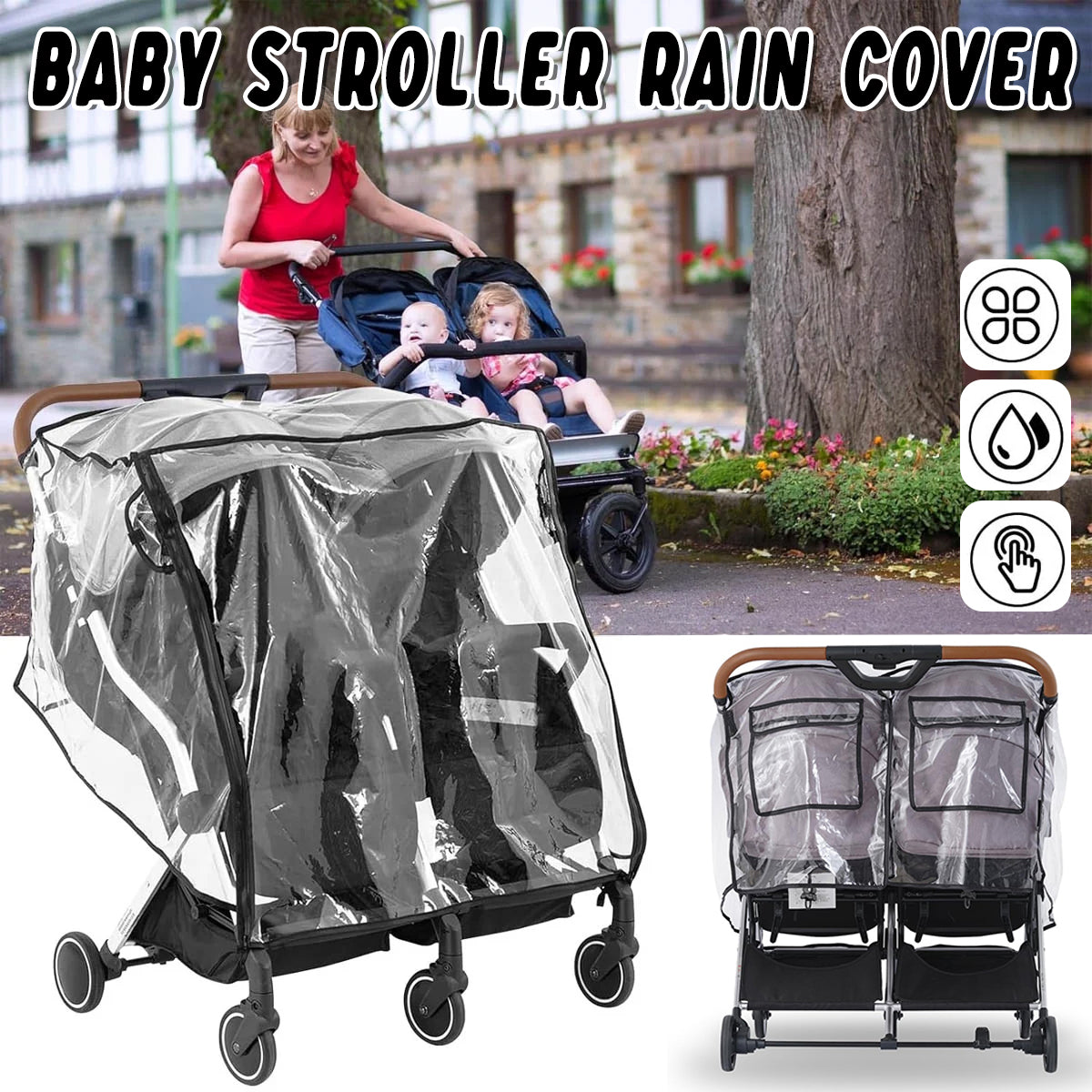 Universal Pram Rain Cover Windproof Transparent Double Canopy Shield