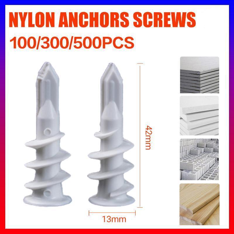 Up to 500PCS Nylon Anchors Screws 13mm X 42mm Wall Mates For Plaster Board Fixings
