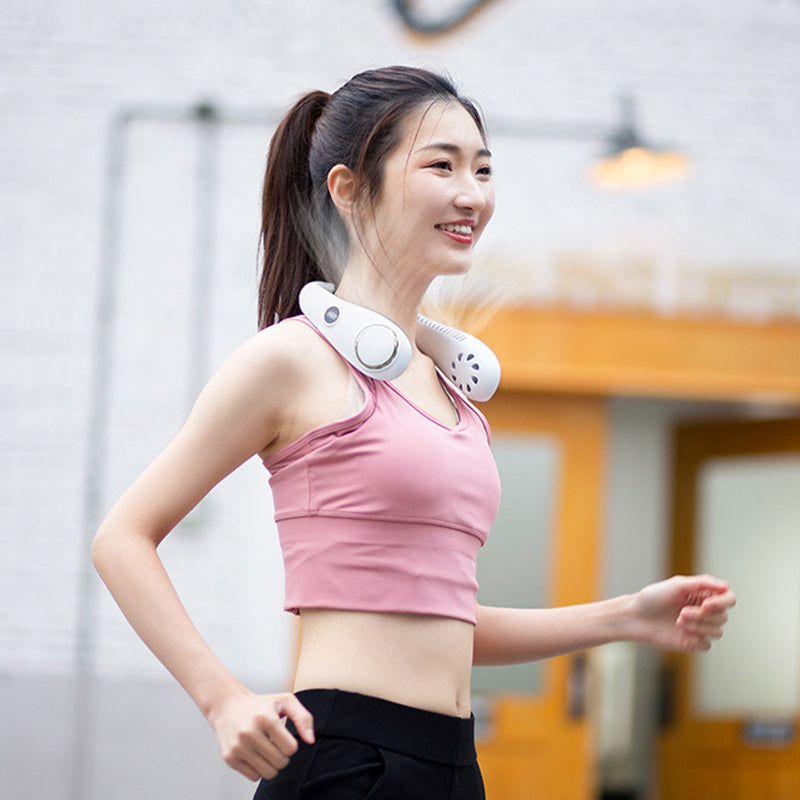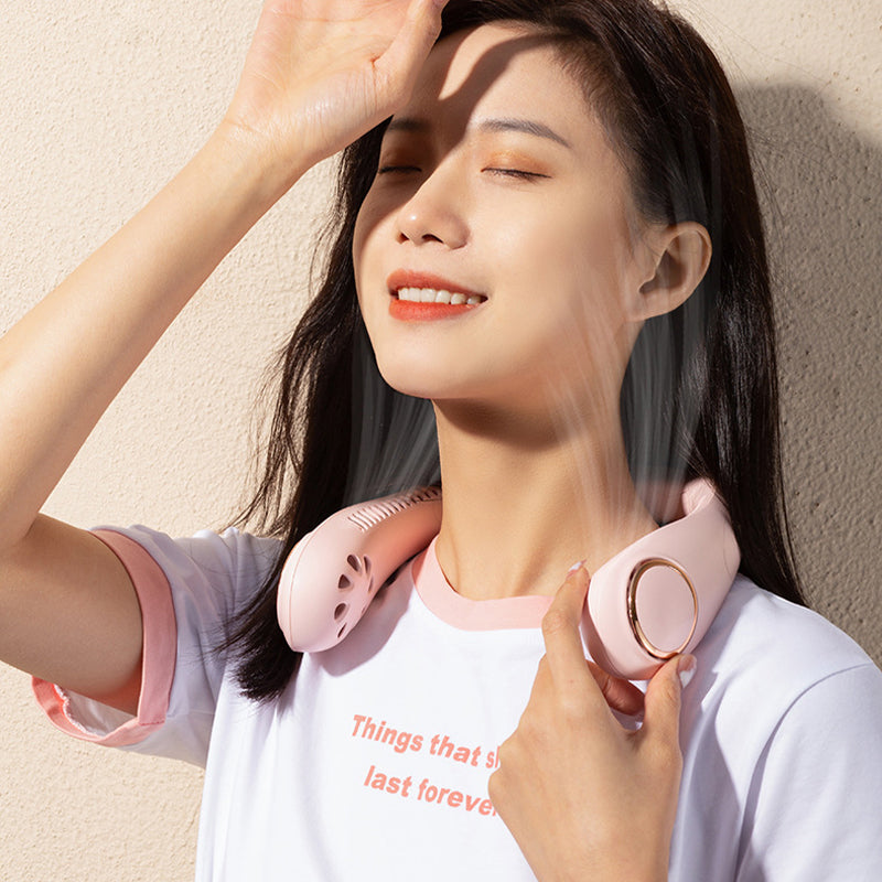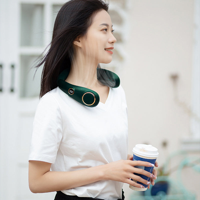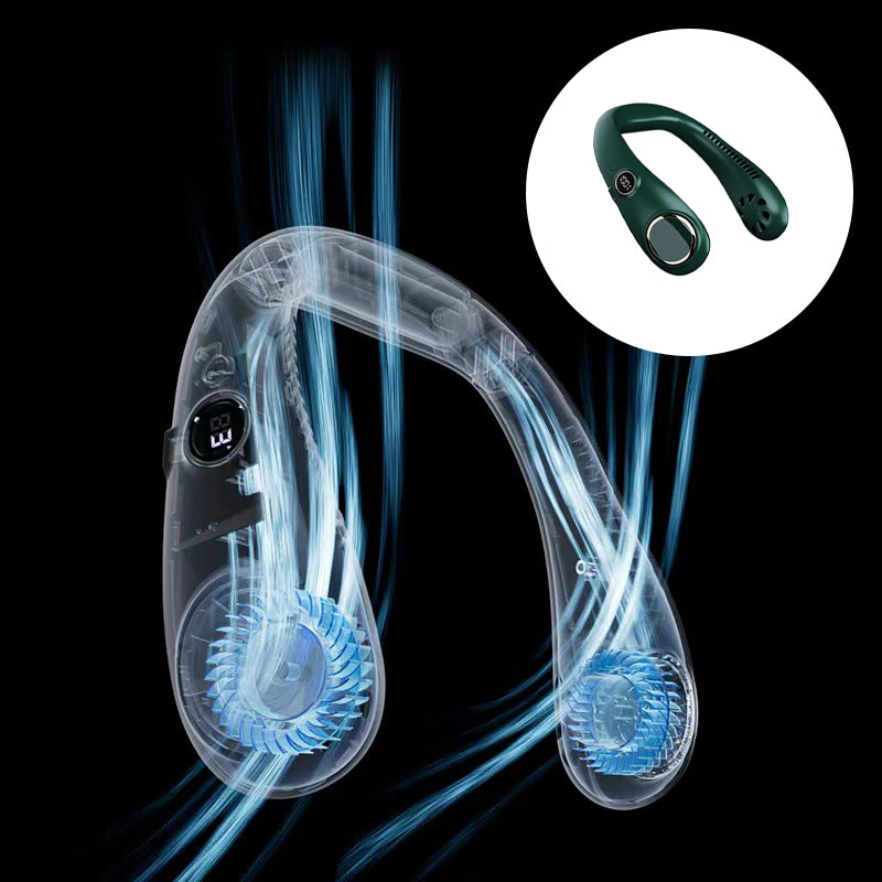 Portable USB Leafless Neck Fan Handsfree Wearable Cooling Airflow with LED Display