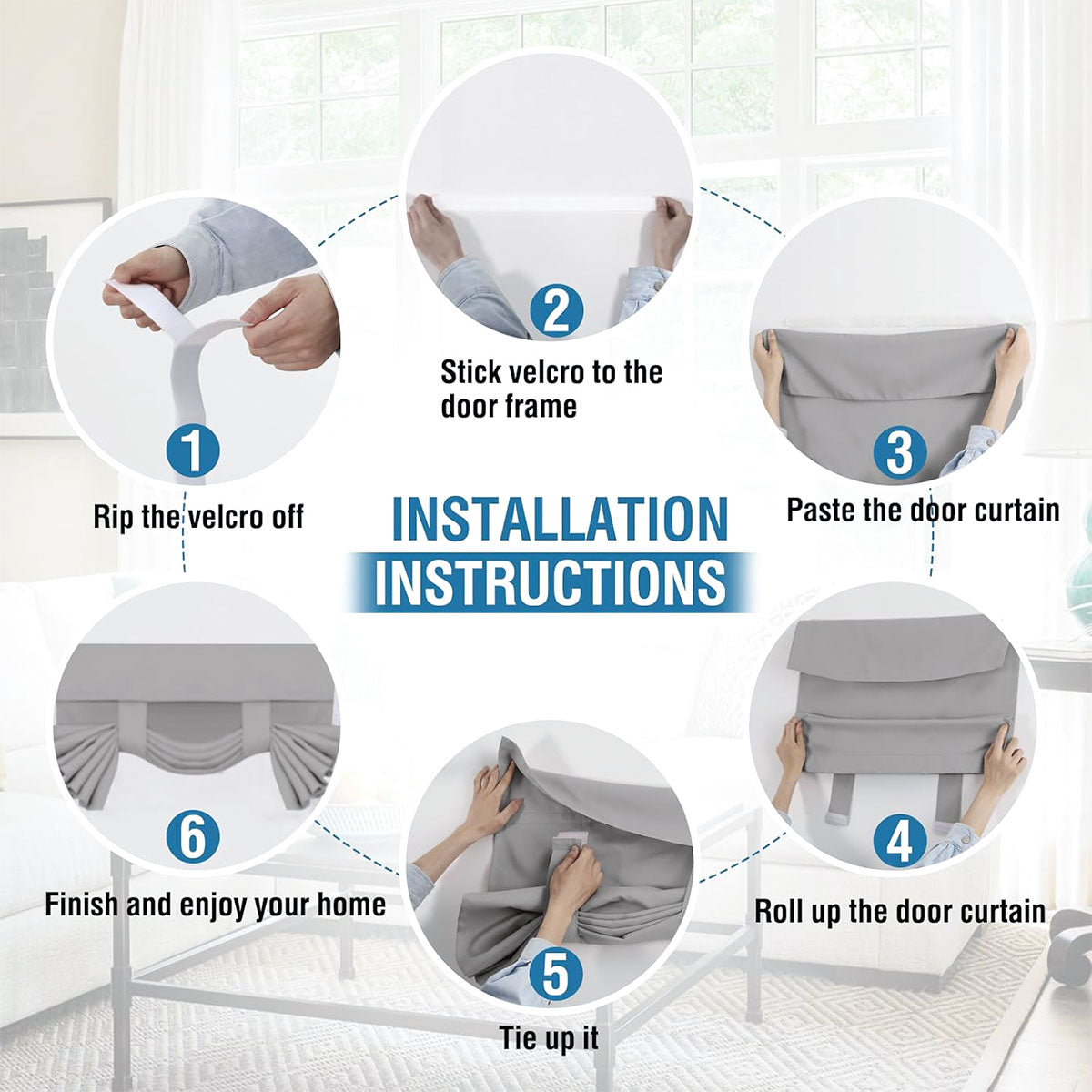 Self Adhesive Door Curtain with Velcro Blackout Thermal Privacy Shade