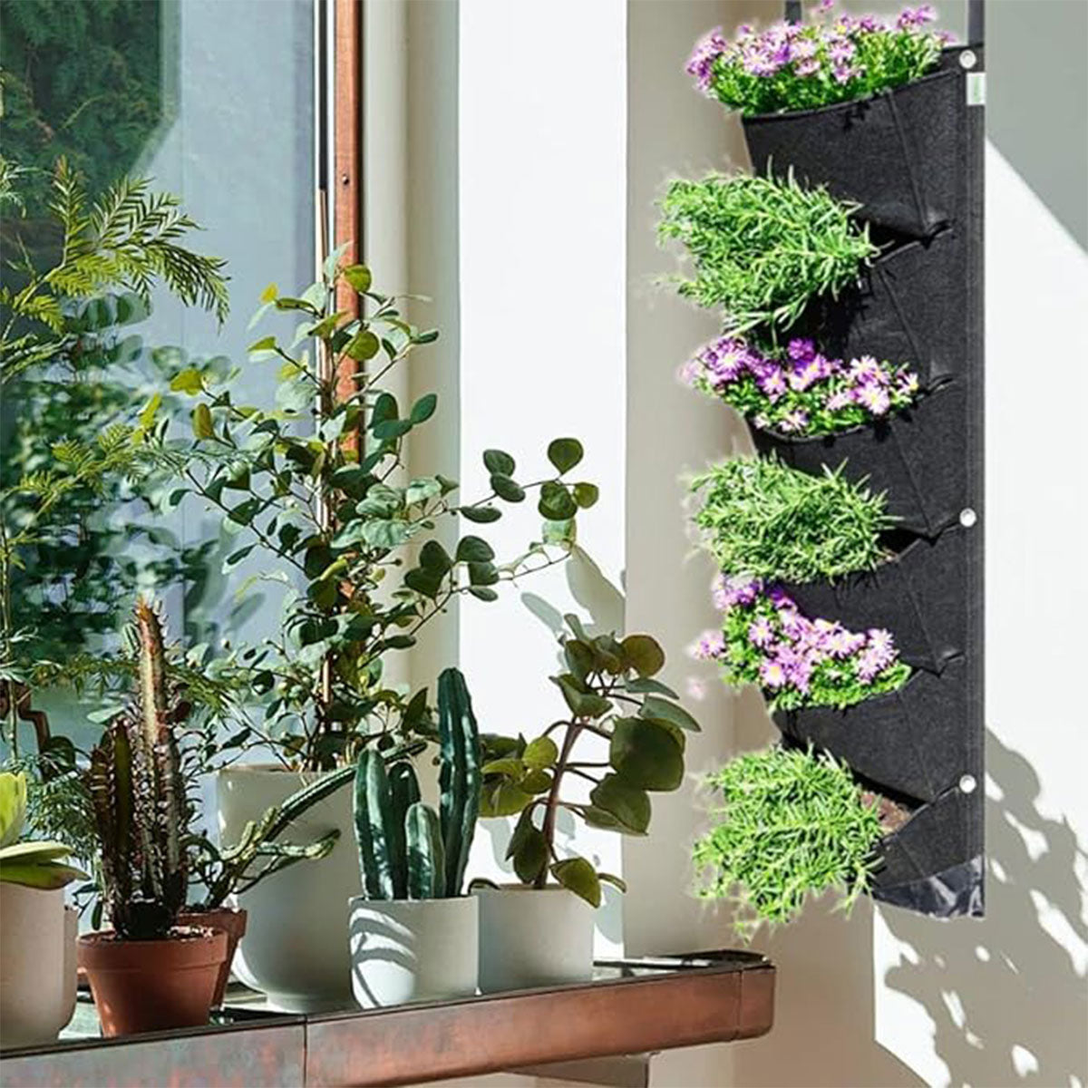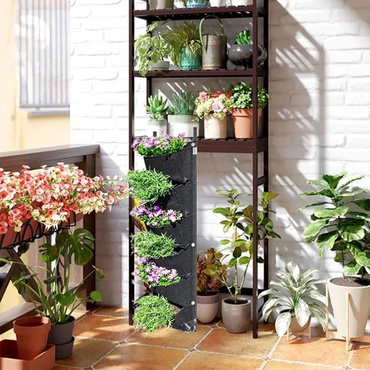 Vertical Wall Hanging Planting Bag 6 Pockets Flower Grow Pouch Planter Garden