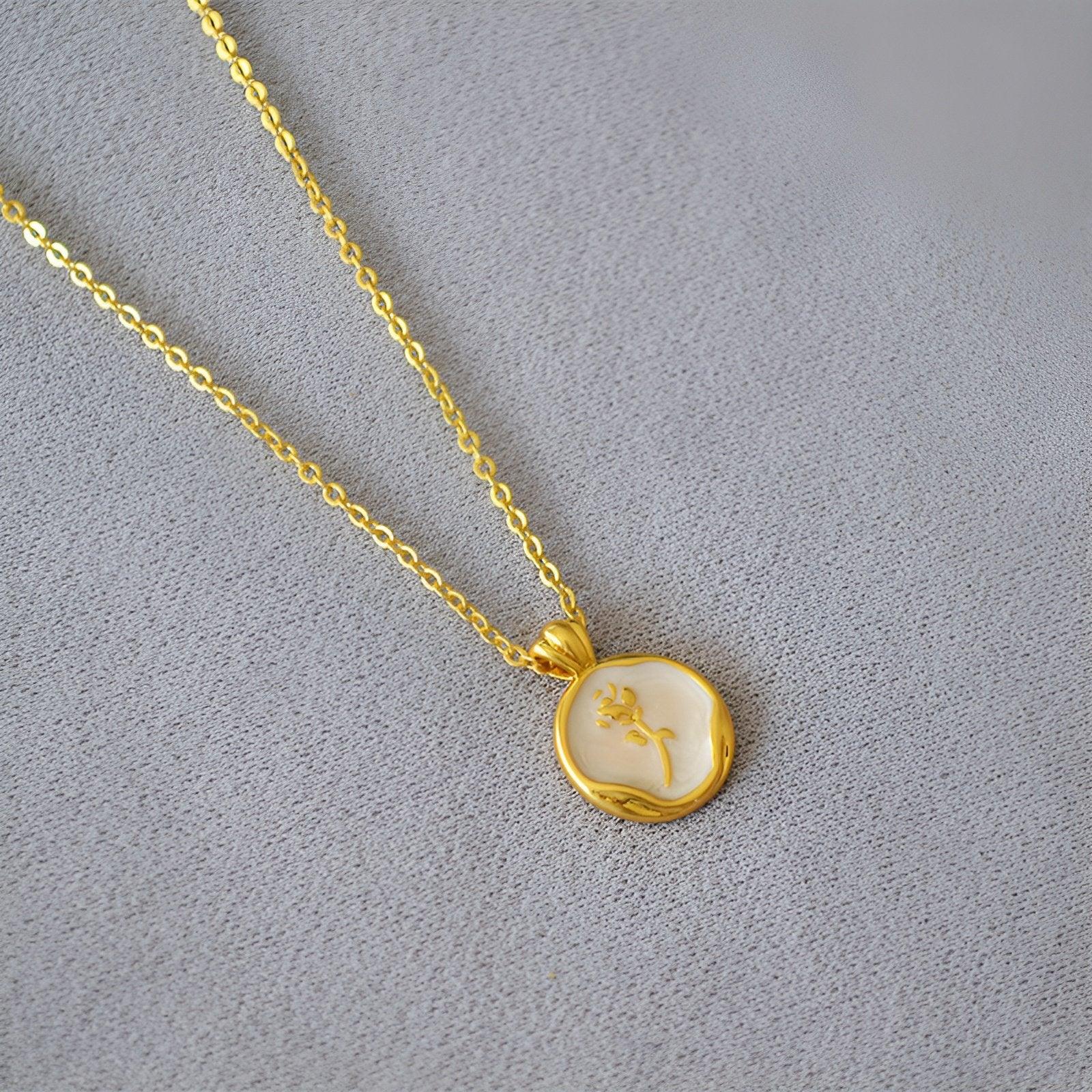 Vintage Bohemian Floral Round Pendant Necklace Women Fashion Chain Jewelry