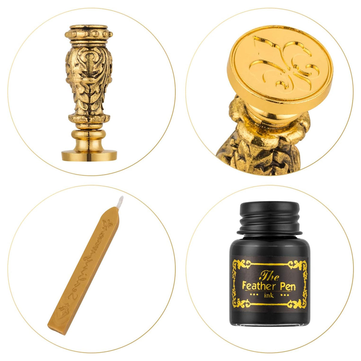 Vintage Calligraphy Quill Pen Set with Ink Wax Seal and Letter Opener Description