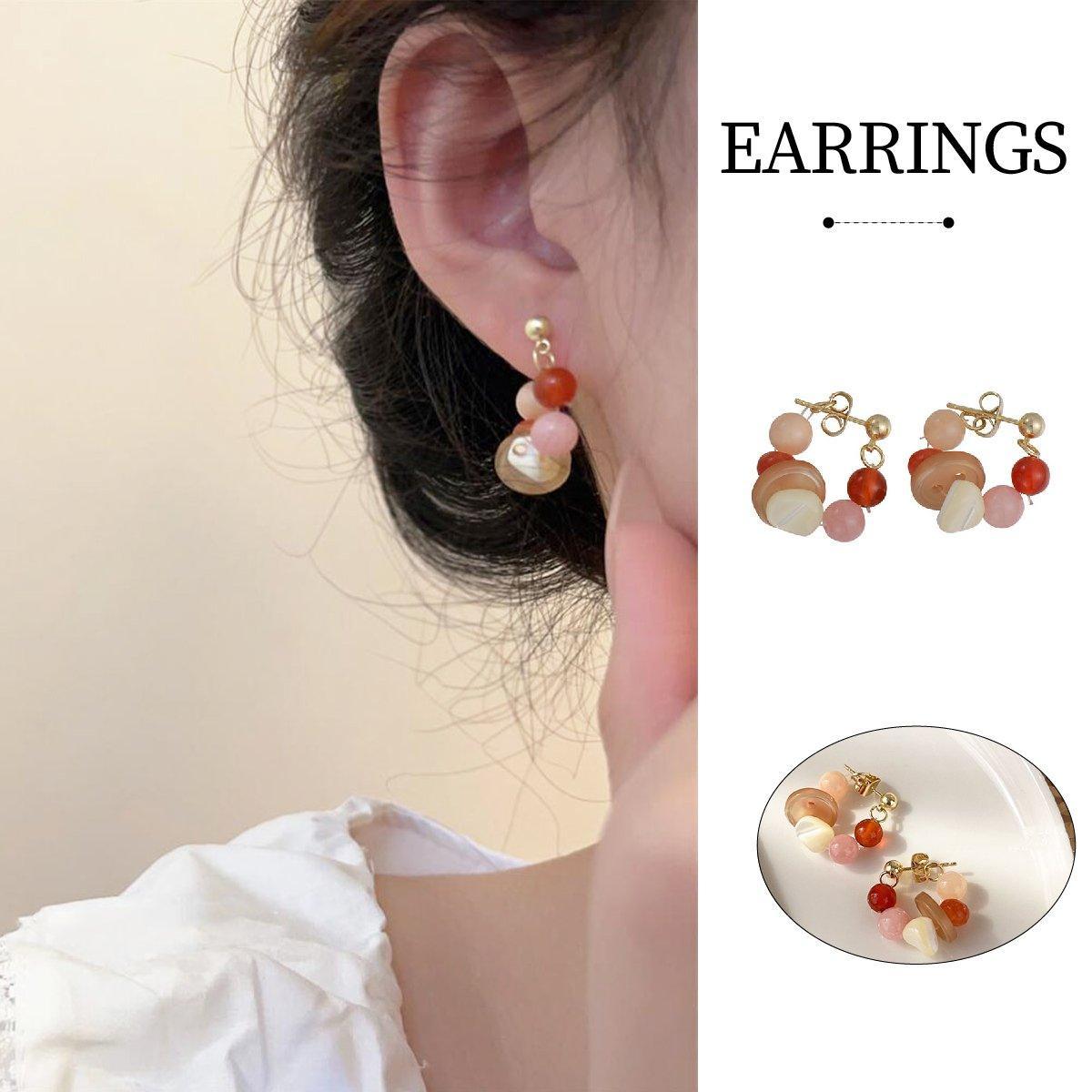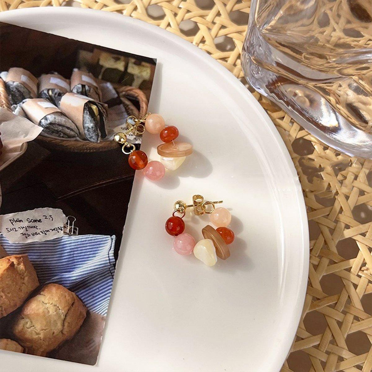 Vintage Coloured Natural Stone Beaded Earrings Boho Jewelry for Women Fashion