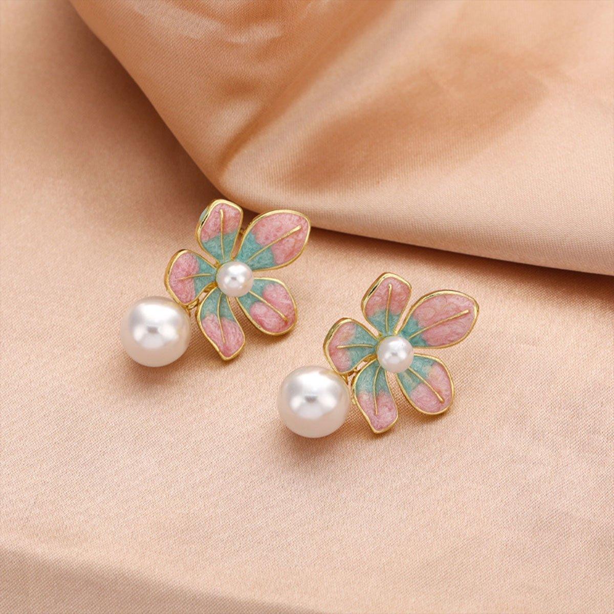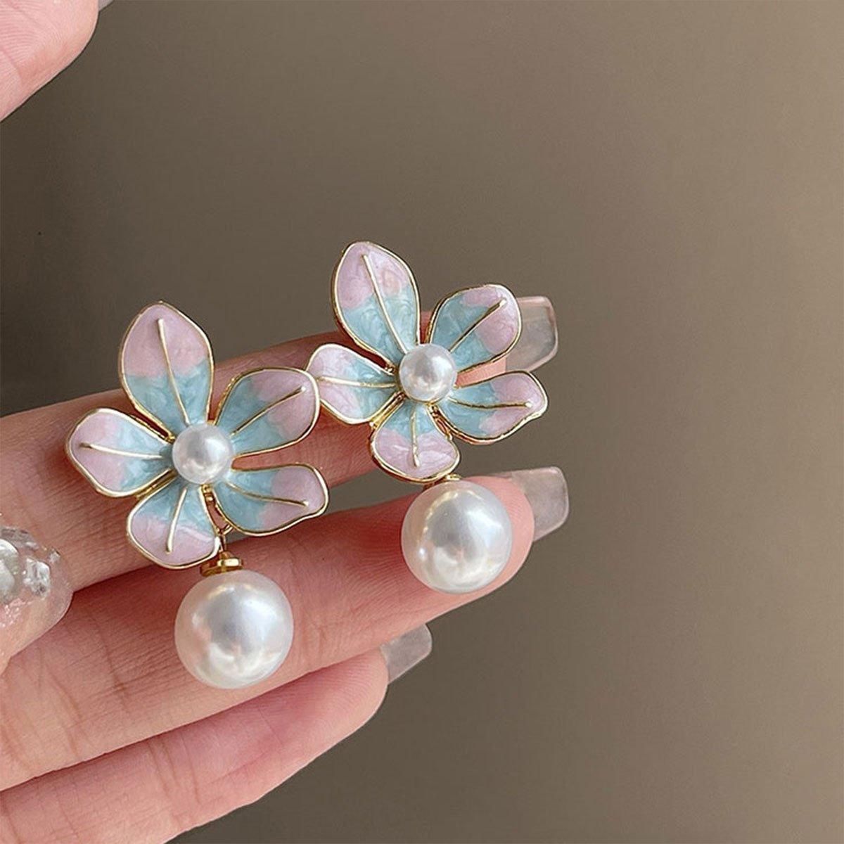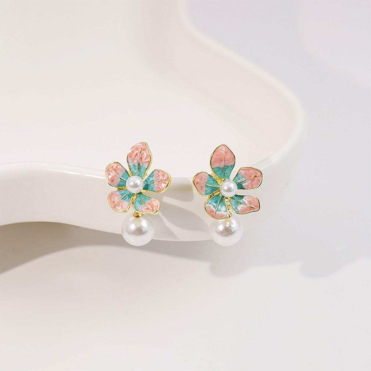 Vintage French Earrings Sweet Two-Tone Green Pink Plant Design Fashion Jewelry