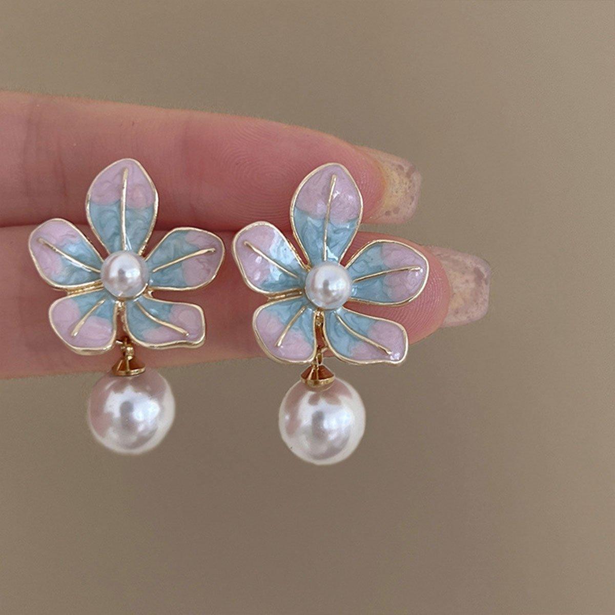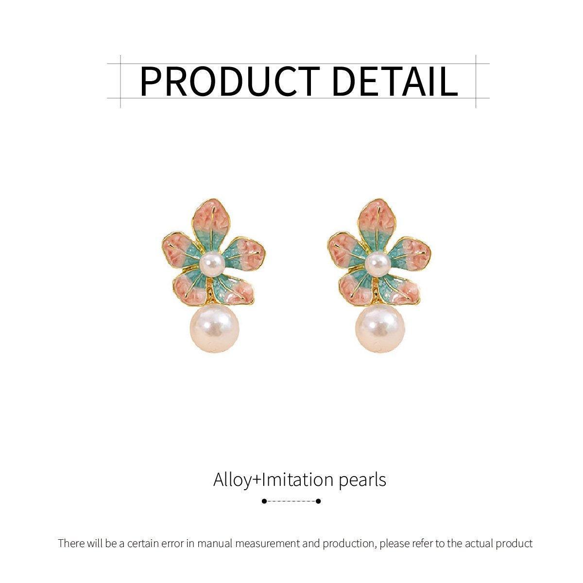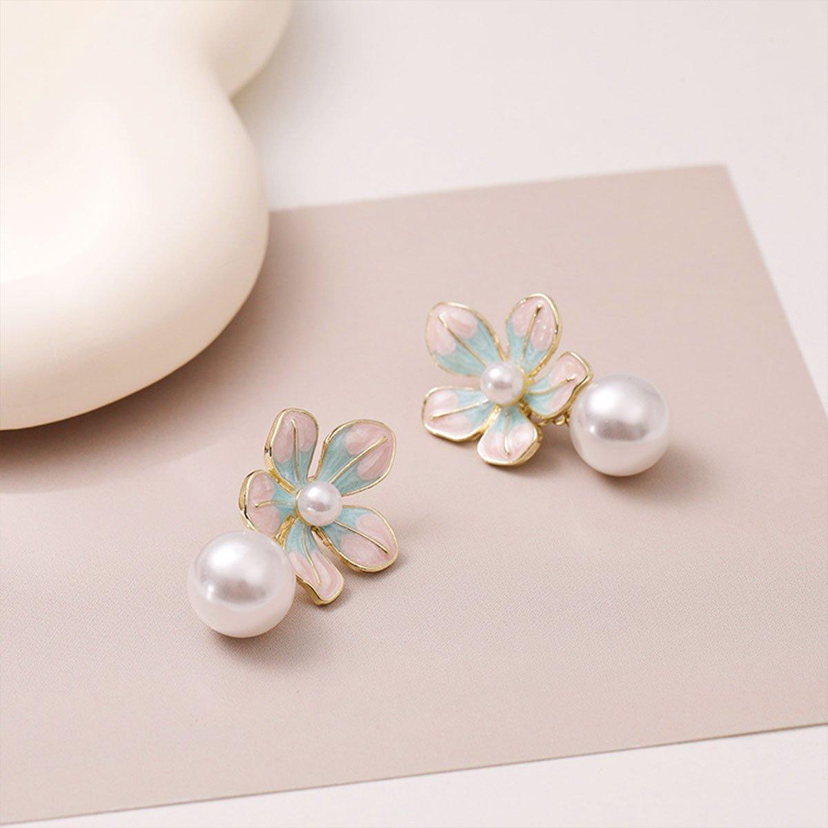 Vintage French Earrings Sweet Two-Tone Green Pink Plant Design Fashion Jewelry