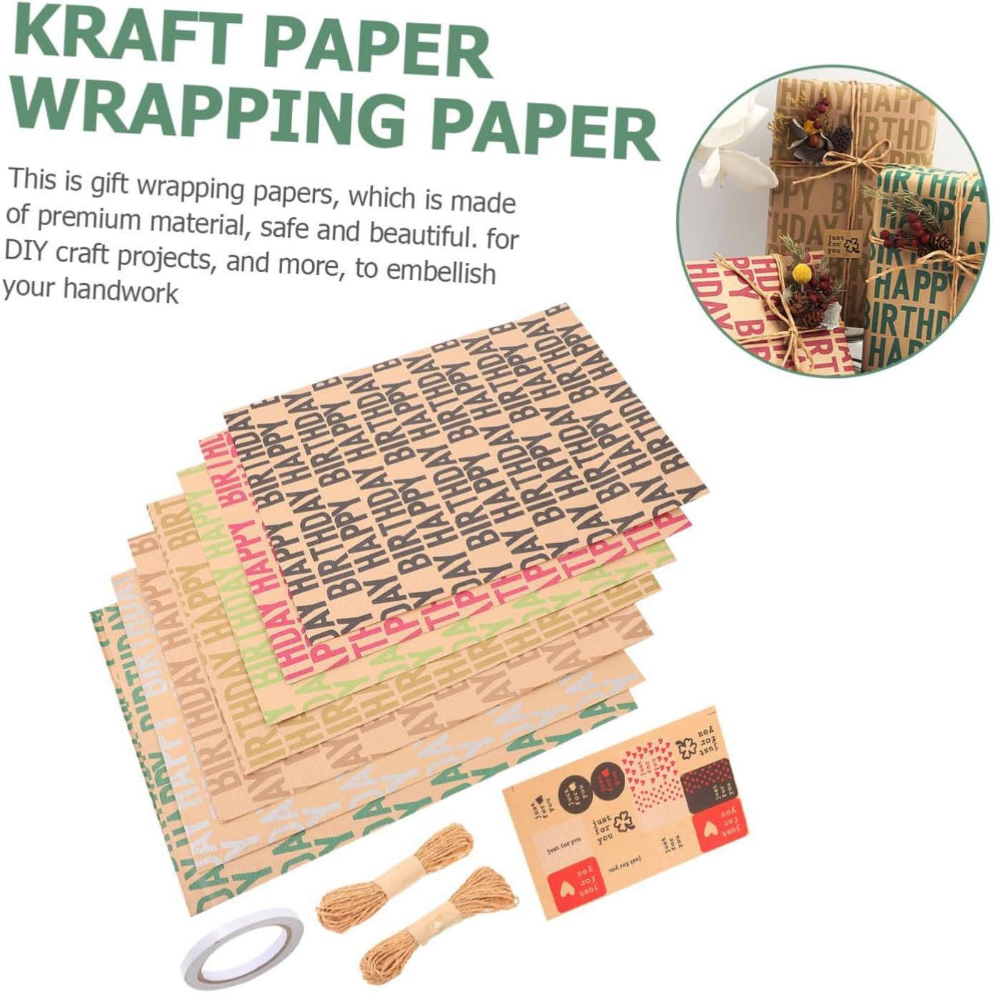 Vintage Kraft Wrapping Paper Happy Birthday Gift Box Wrapping Paper for Presents