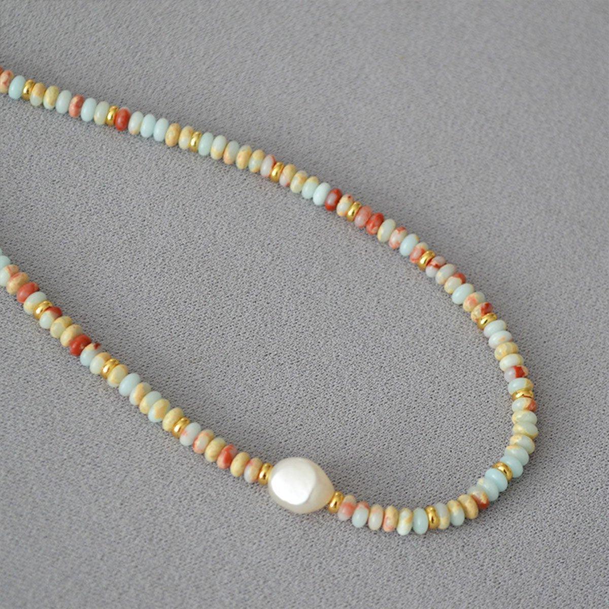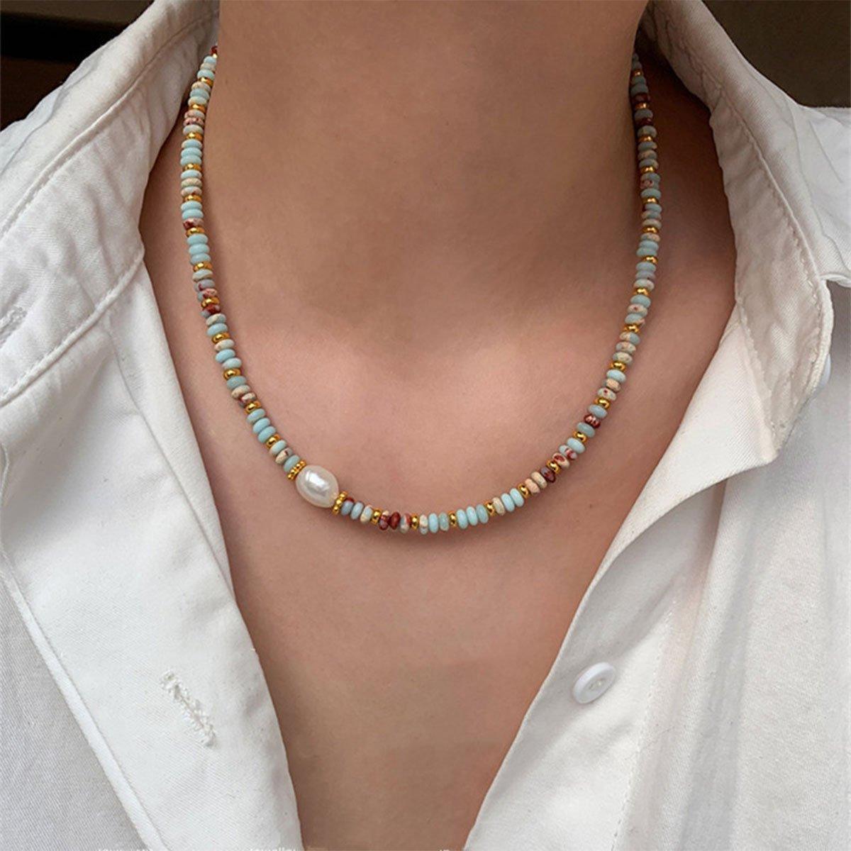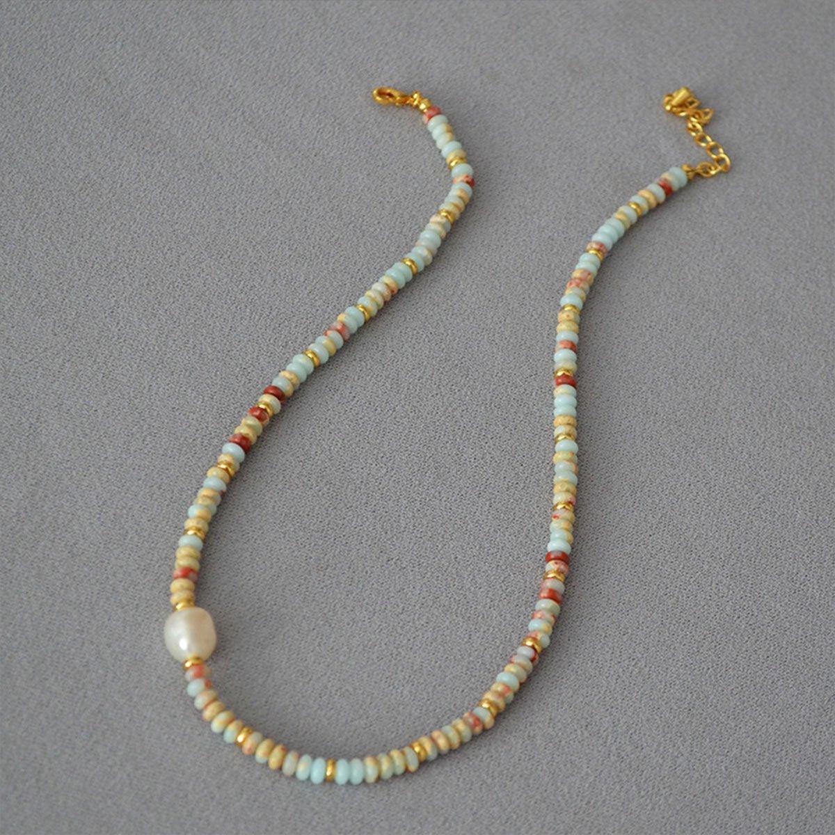 Vintage Ocean Style Blue Beaded Necklace Artsy Resort Fashion Jewelry