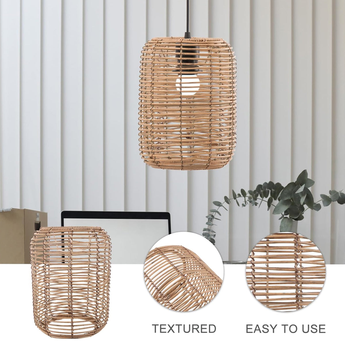 Vintage Pendant Lamp Rattan Like Woven Lampshade Boho Lighting for Living Room