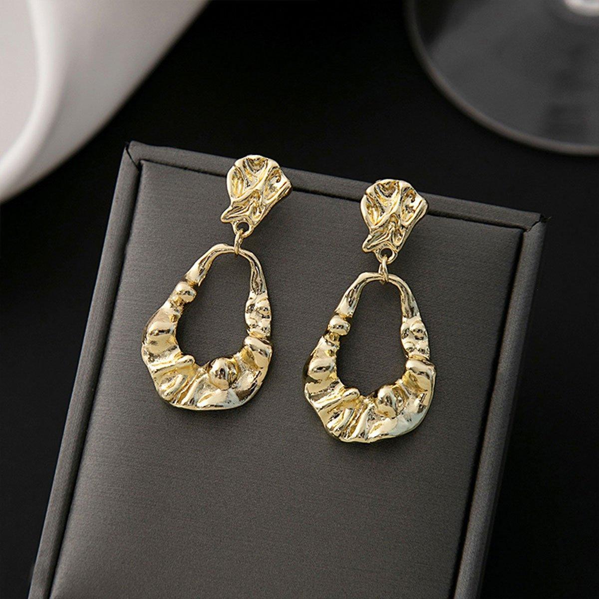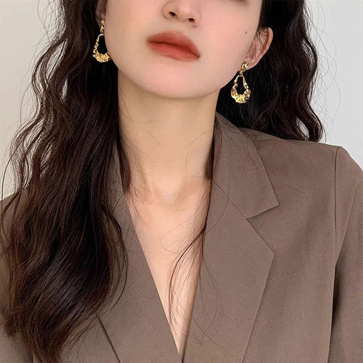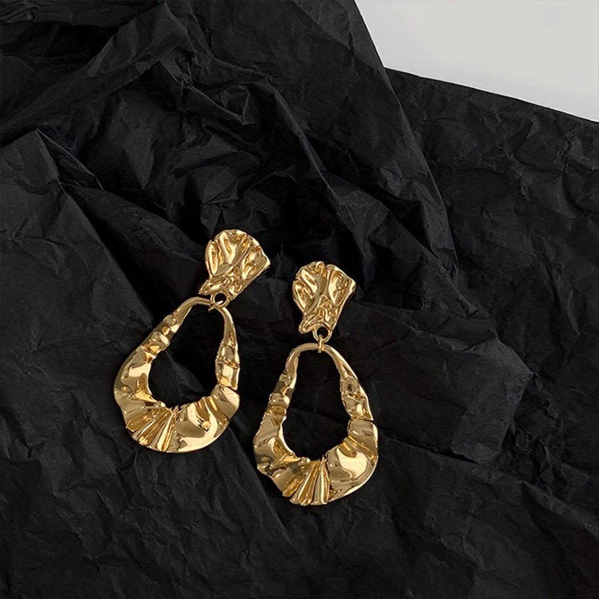 Vintage Ruffled Earrings for Women Retro Irregular Design Fashion Jewelry Gift