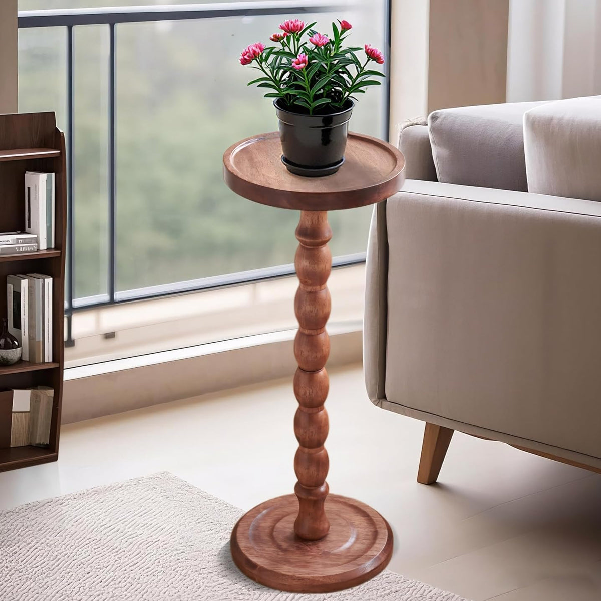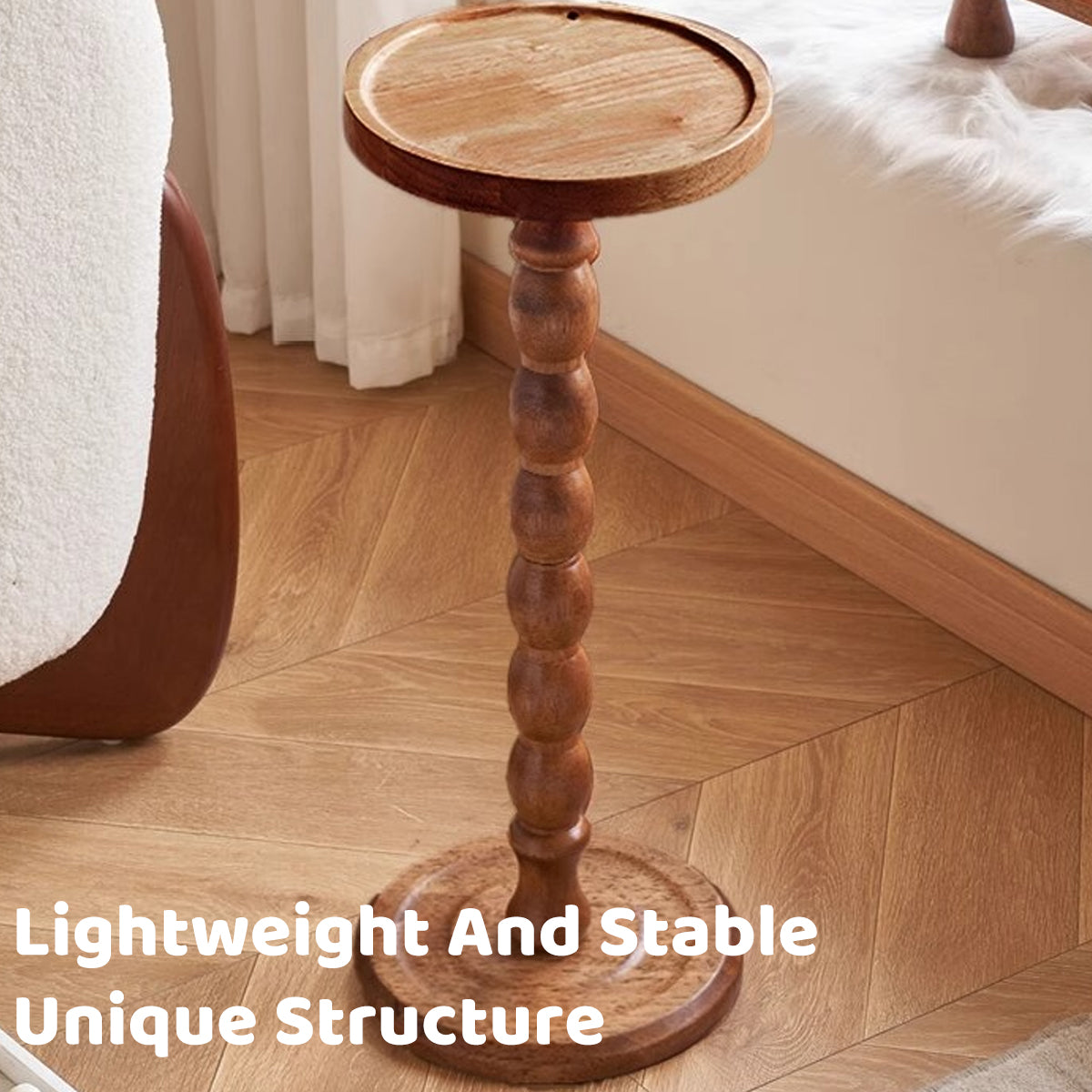 Vintage Solid Wood Side Table Small Round Table Sturdy Anti Slip Easy Clean