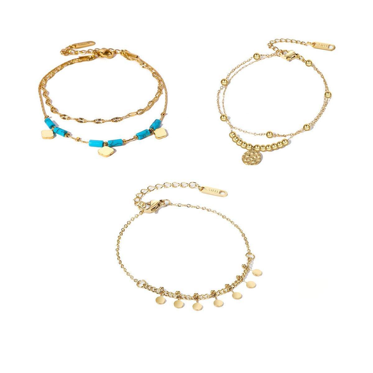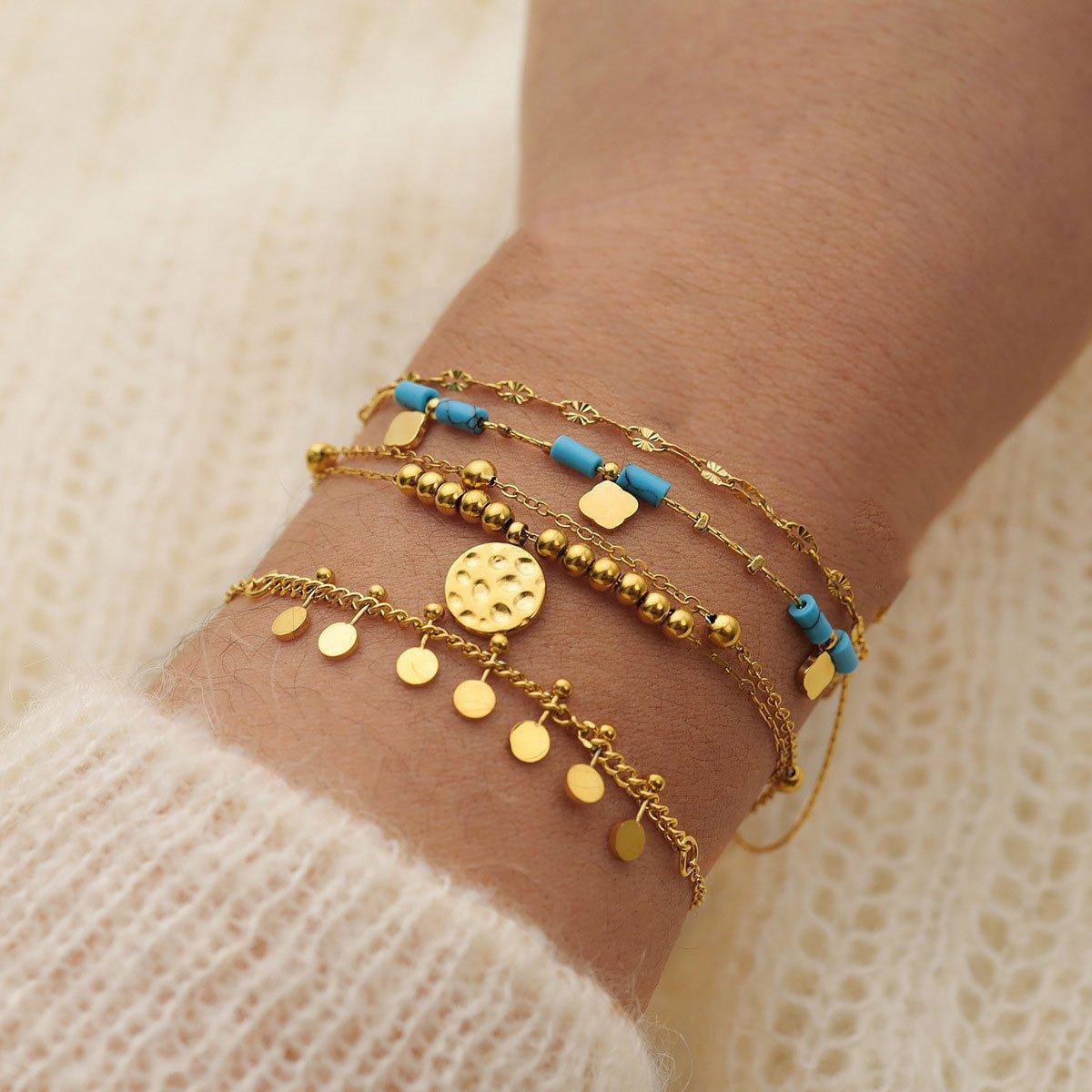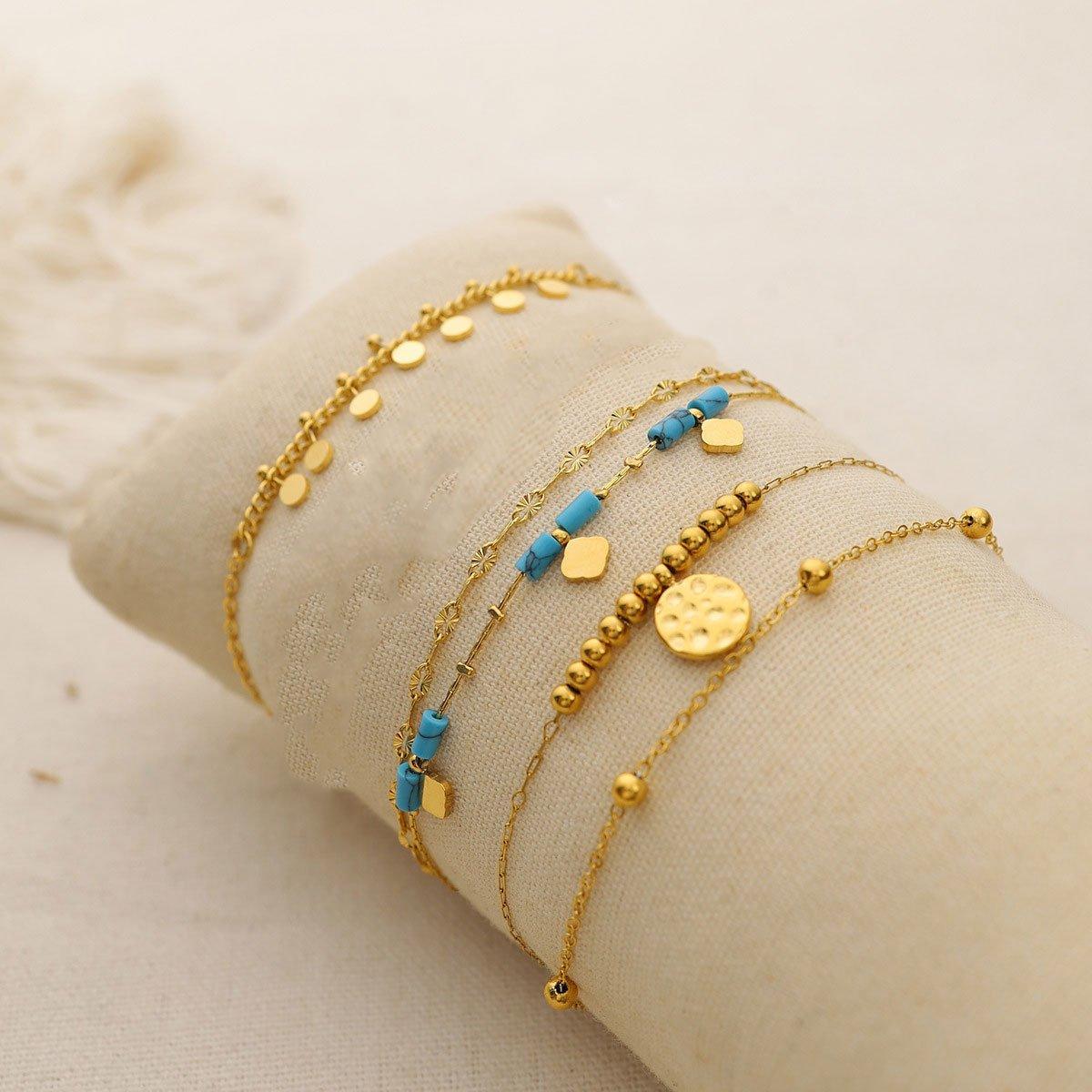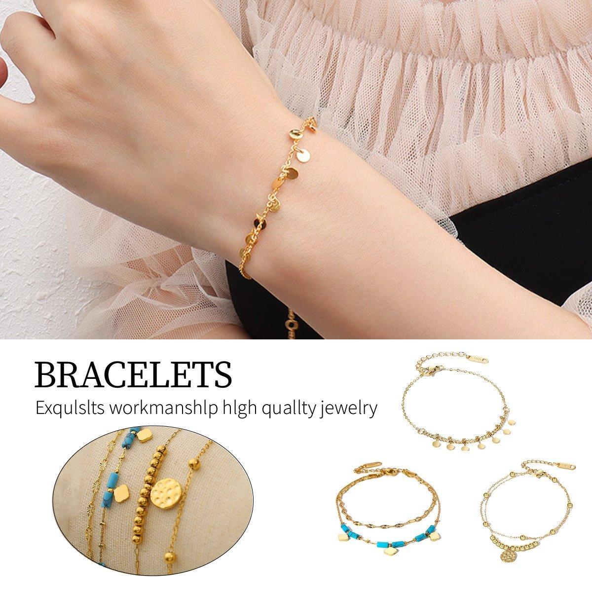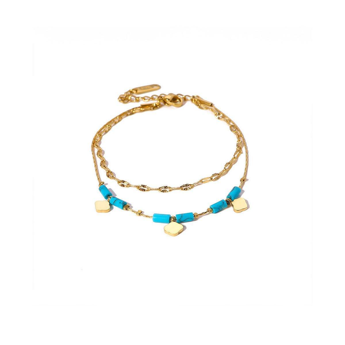Vintage Turquoise Bracelet Women Boho Blue Stone Jewelry Adjustable Beaded