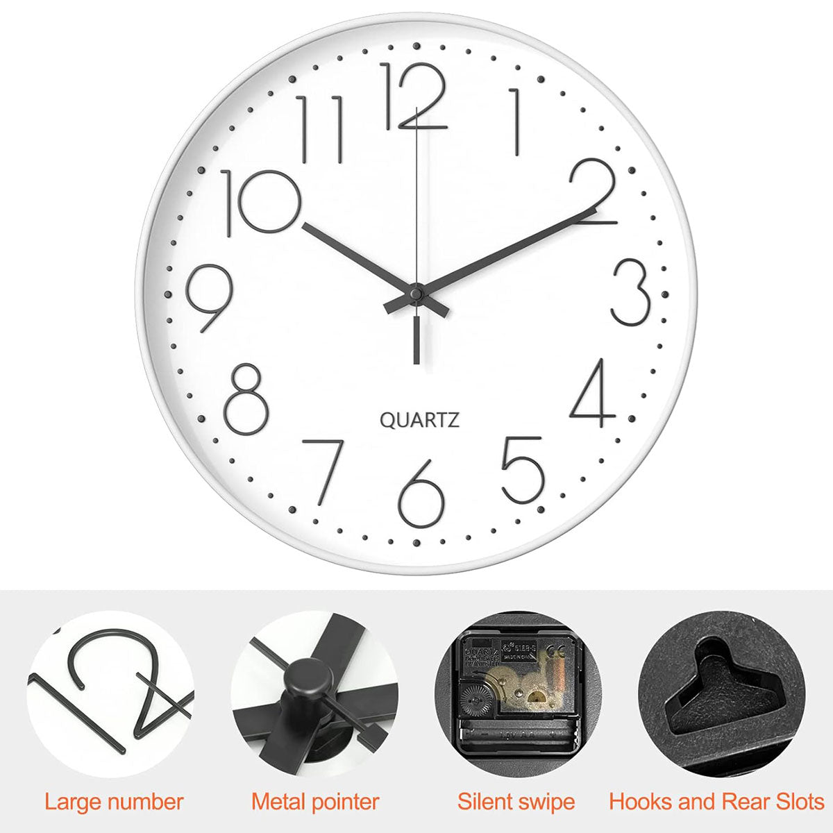 Wall Clock Silent 30cm Round Quartz Hanging Clock for Home Office Living Room