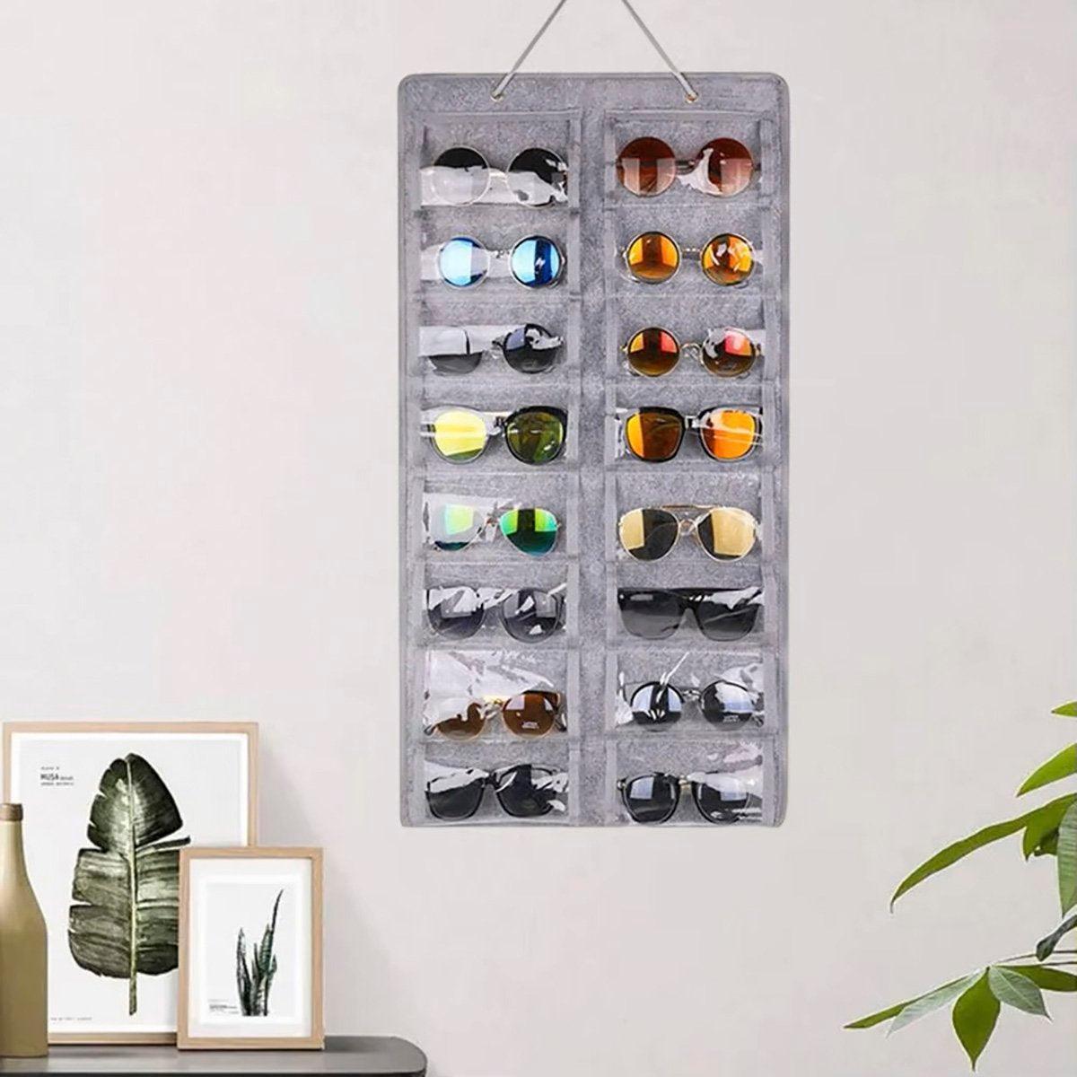 Wall Mounted Felt Glasses Storage Bag Foldable Hanging Sunglasses Organizer