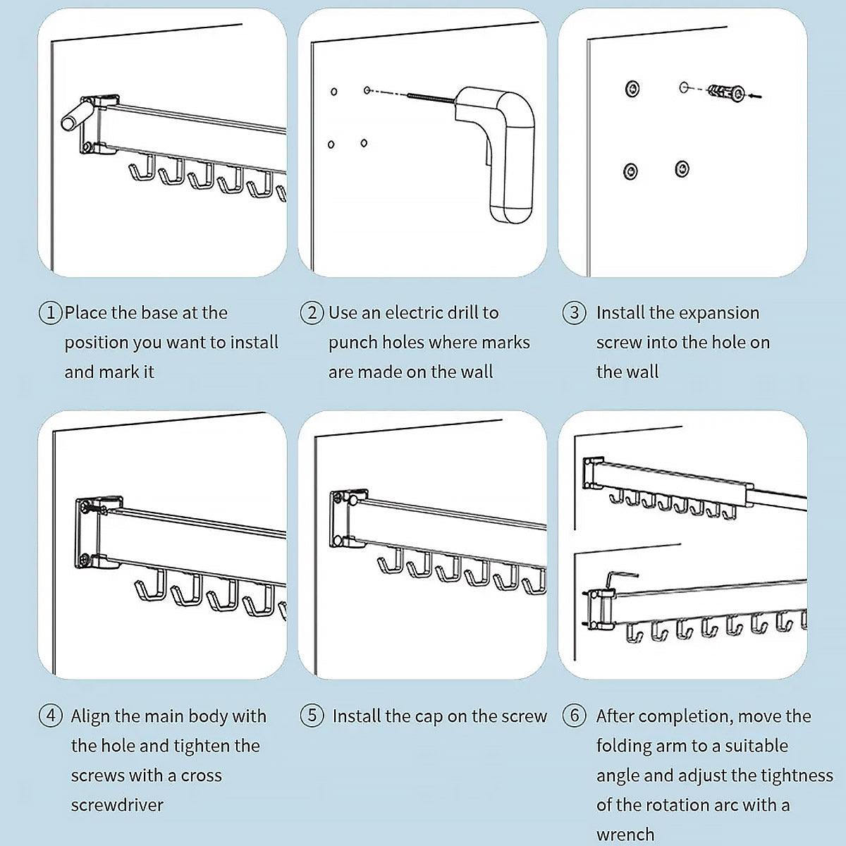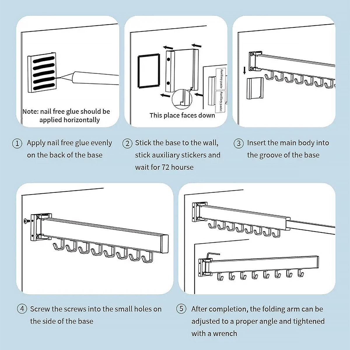 Wall Mounted Folding Drying Rack Telescopic Clothes Hanger Balcony Indoor Rod