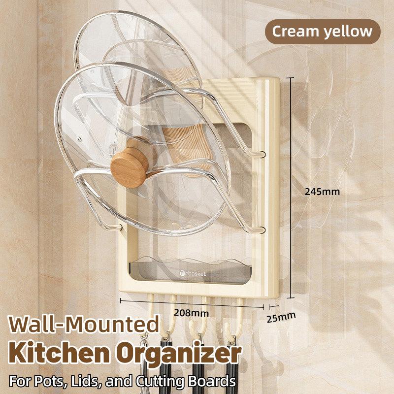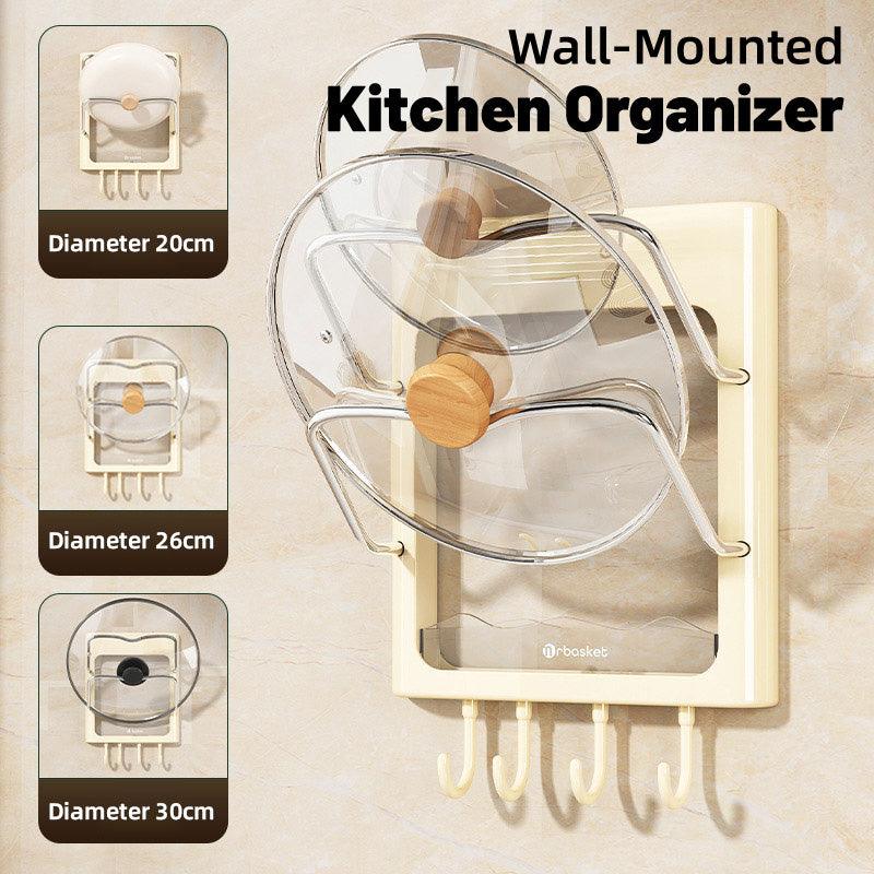 Wall Mounted Pot Lid Rack Multifunctional Household Storage Organizer Shelf