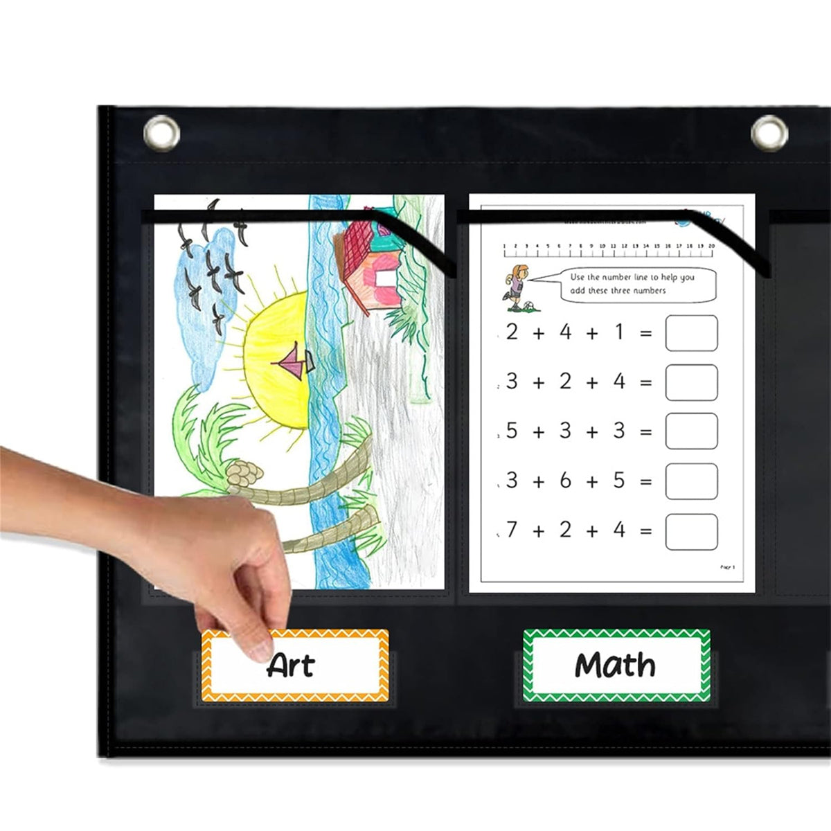 Wall Pocket Chart with 6 Labels Durable Oxford Cloth for School Office Documents