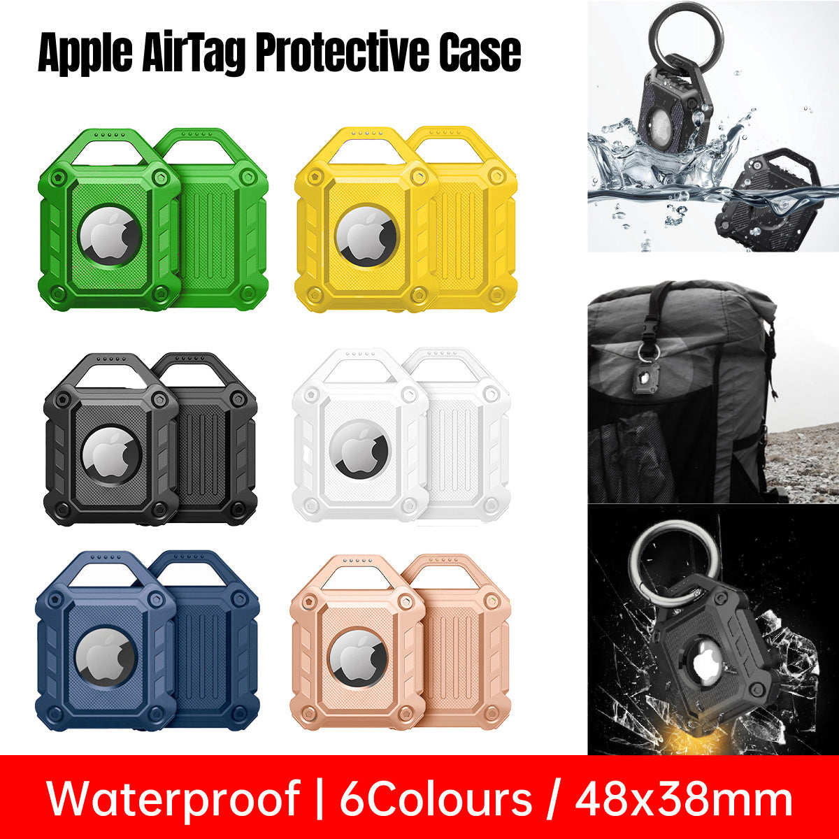 Waterproof Apple AirTag Protective Case TPU Cover Air Tag Tracker Loop Holder