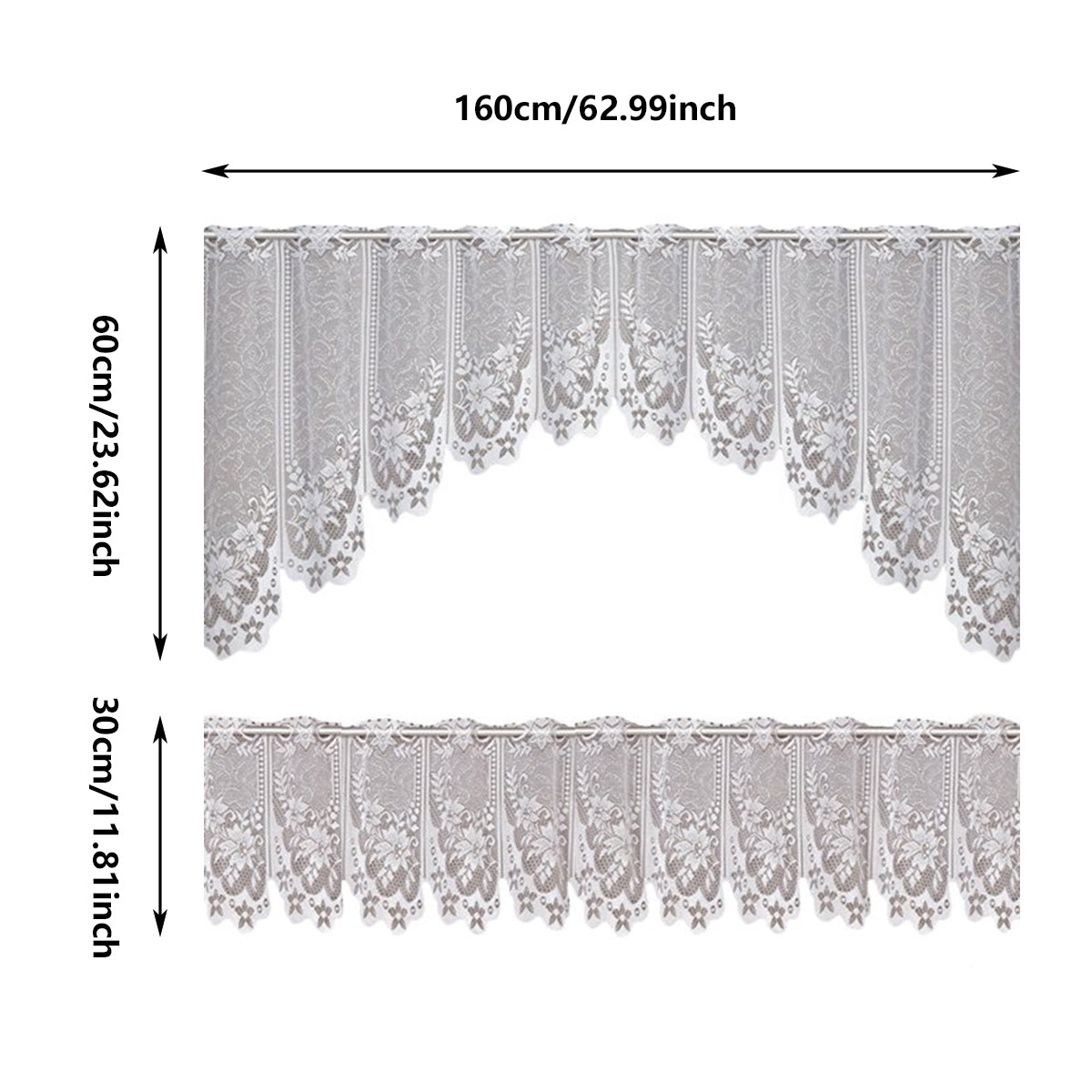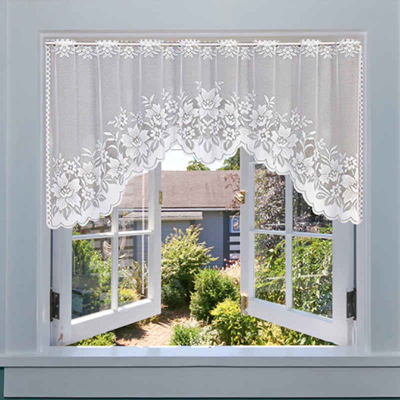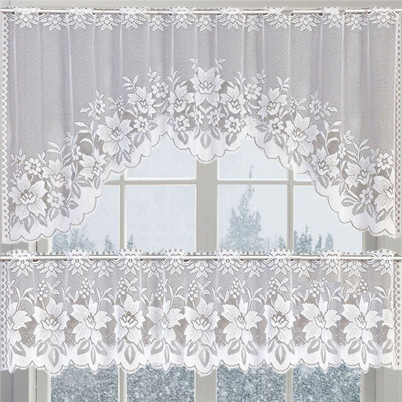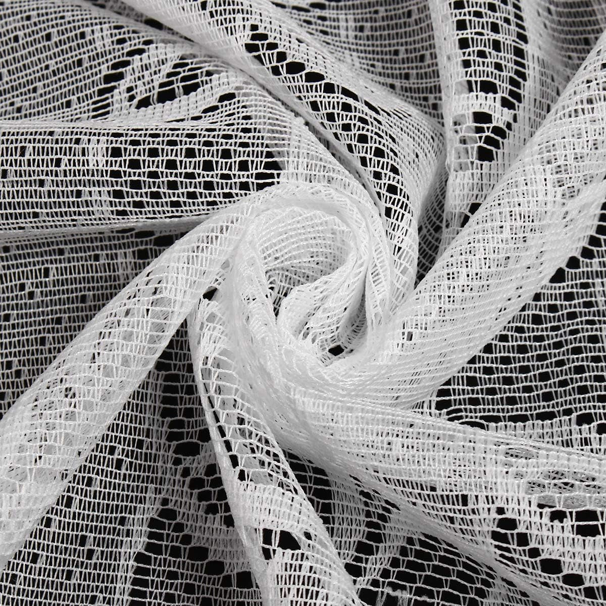 White Lace Window Curtains Short Tier Panel for Kitchen Bathroom Decor Use