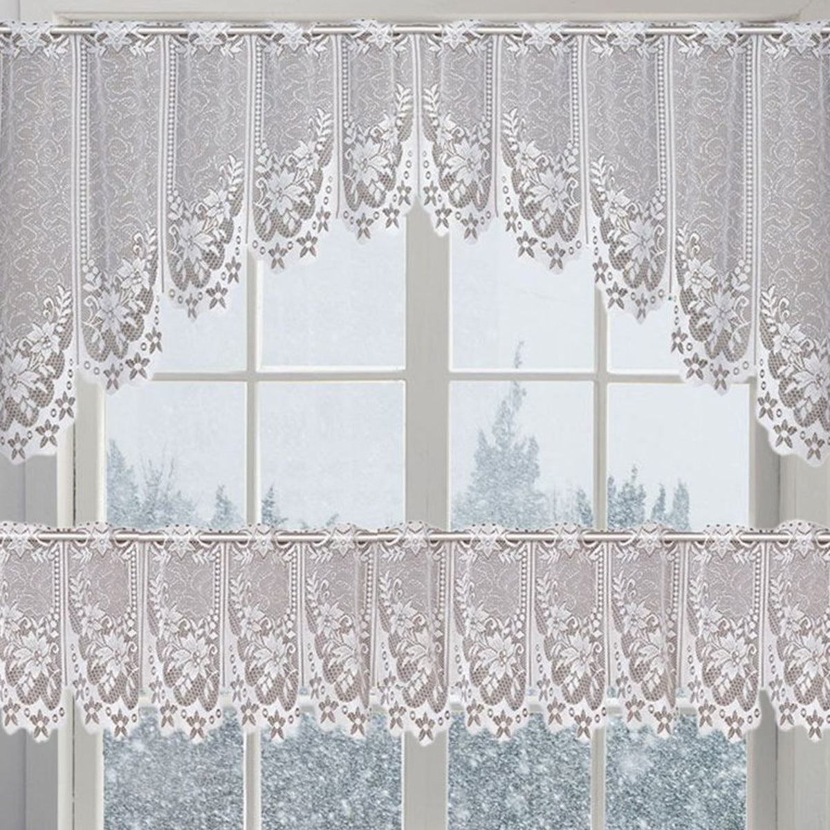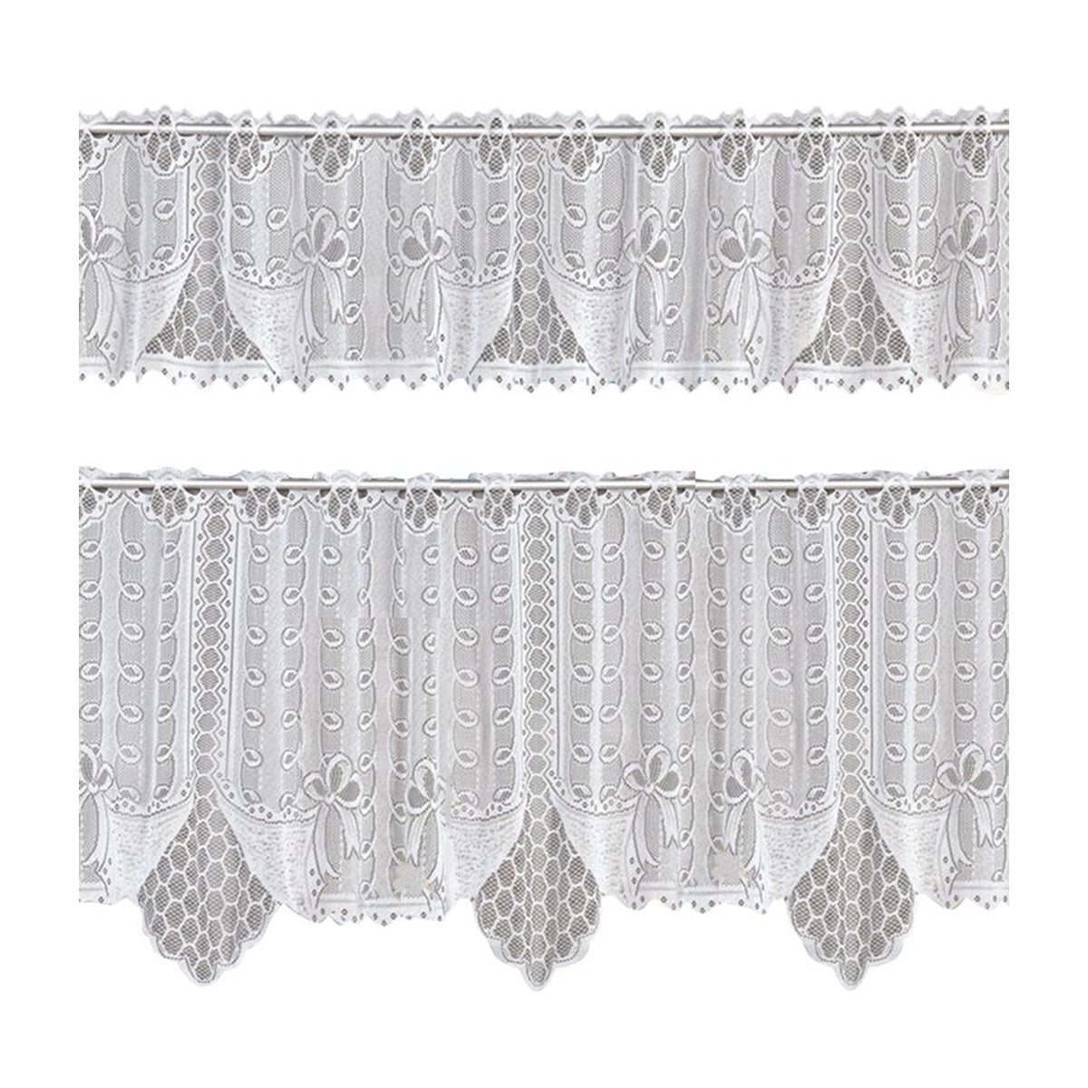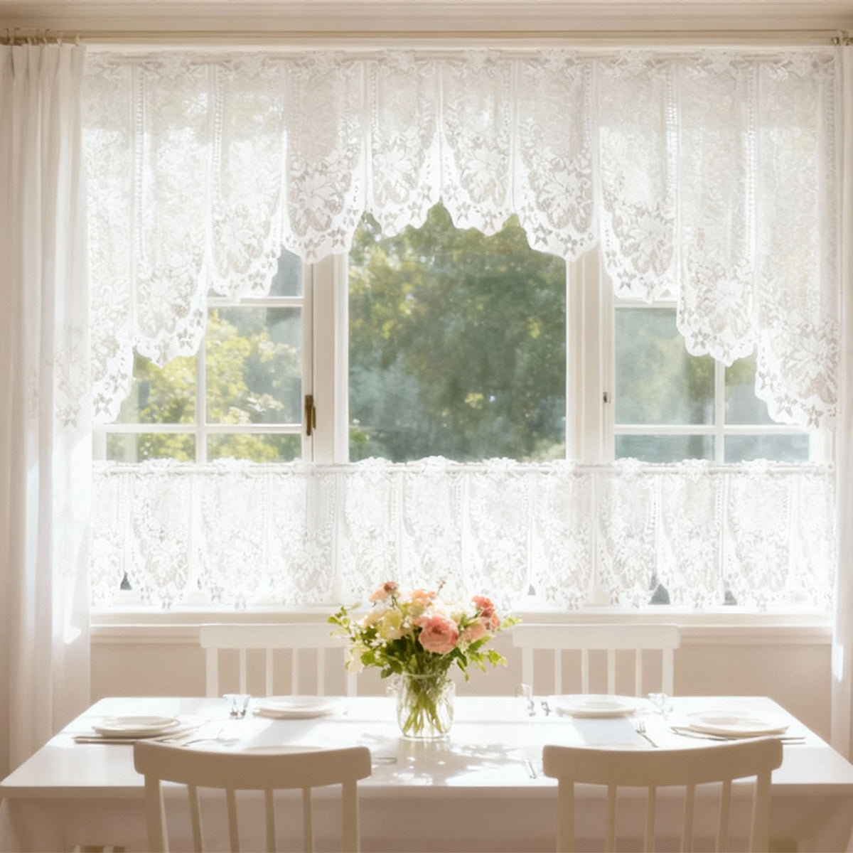 White Lace Window Curtains Short Tier Panel for Kitchen Bathroom Decor Use