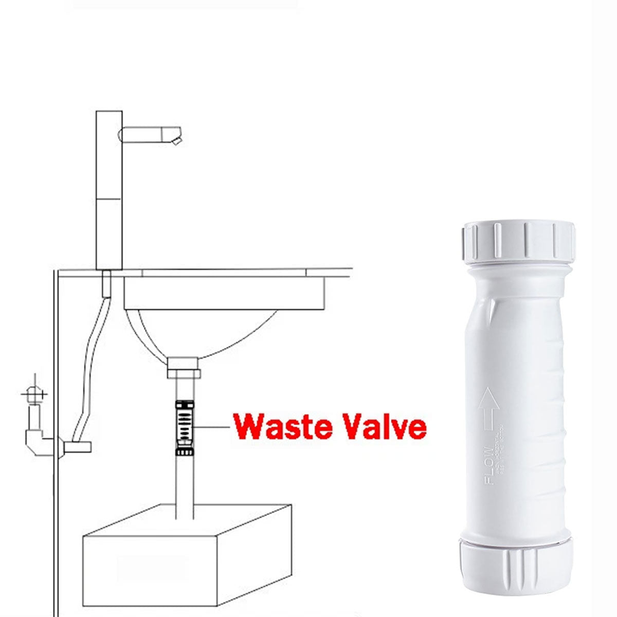 White Waterless Self Sealing Waste Valve Inline Trap Bath Basin For Caravan RV