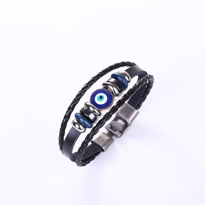 Evil Eye Greek Mati Turkish Nazar Weaved Leather Bracelet Cuff Jewelry