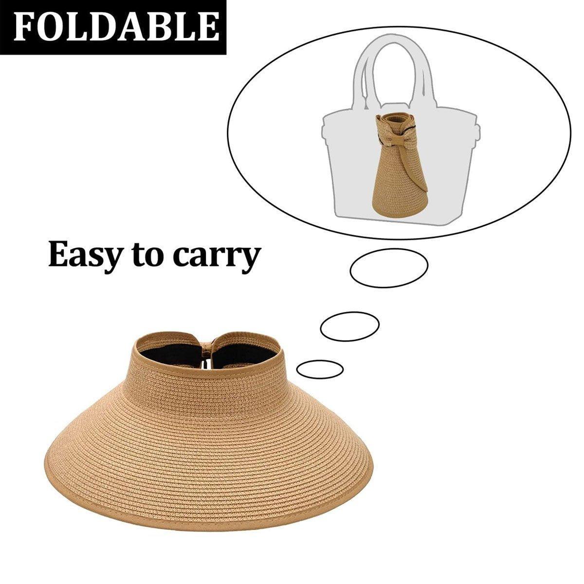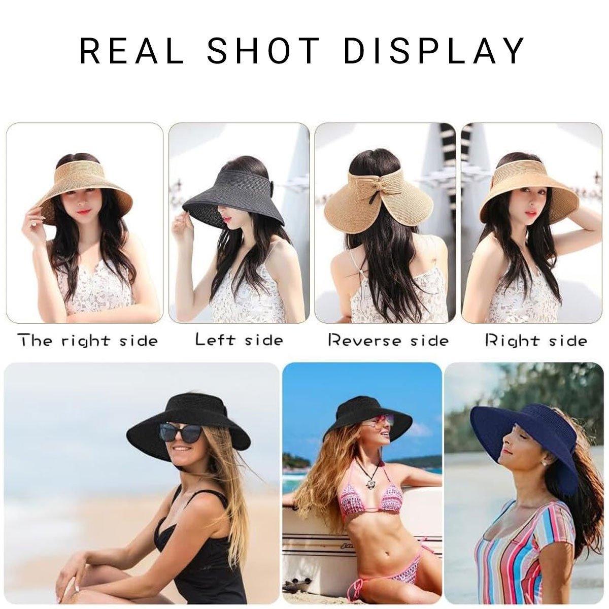 Women Roll Up Sun Visor Wide Brim Straw Hat Summer Foldable UV Protection Cap