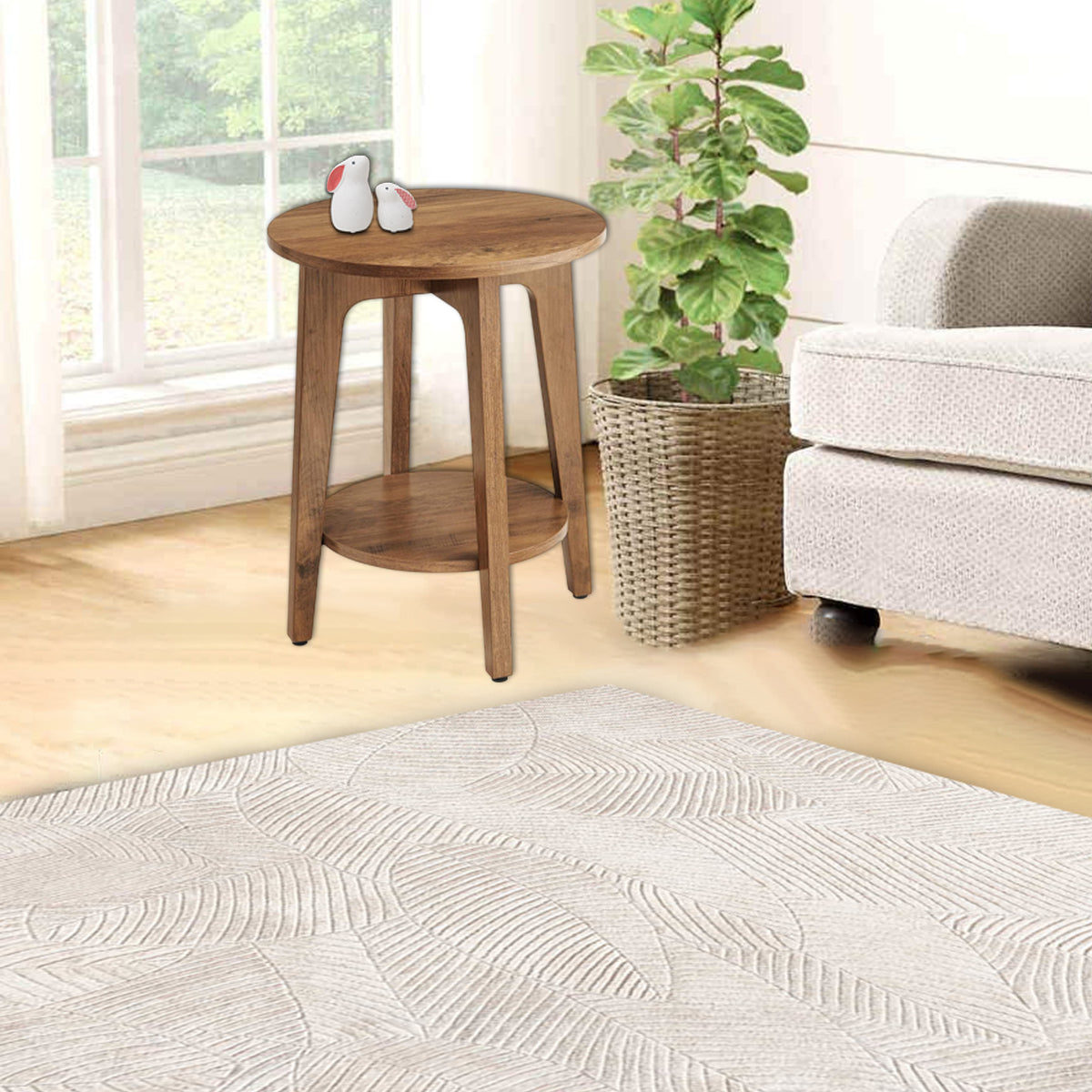 Wood Double-Layer Small Round Table Sturdy Stable for Home Living Room Decor
