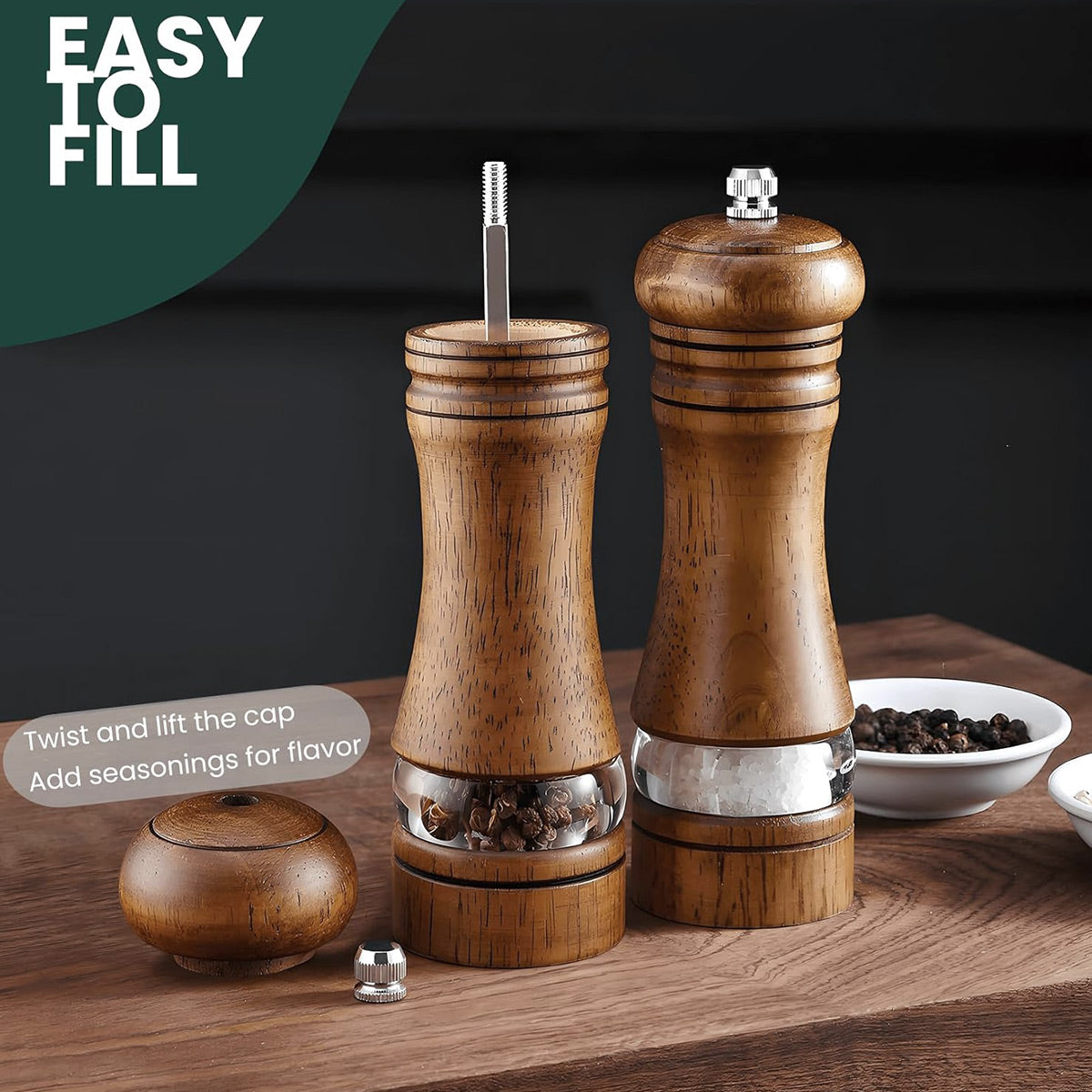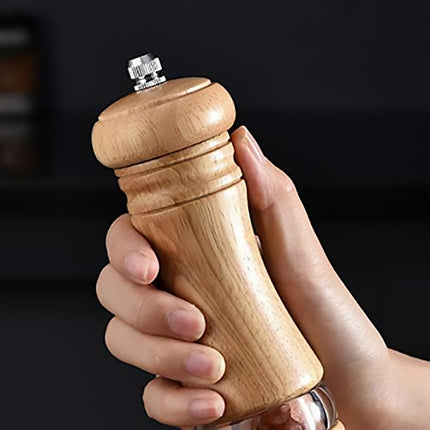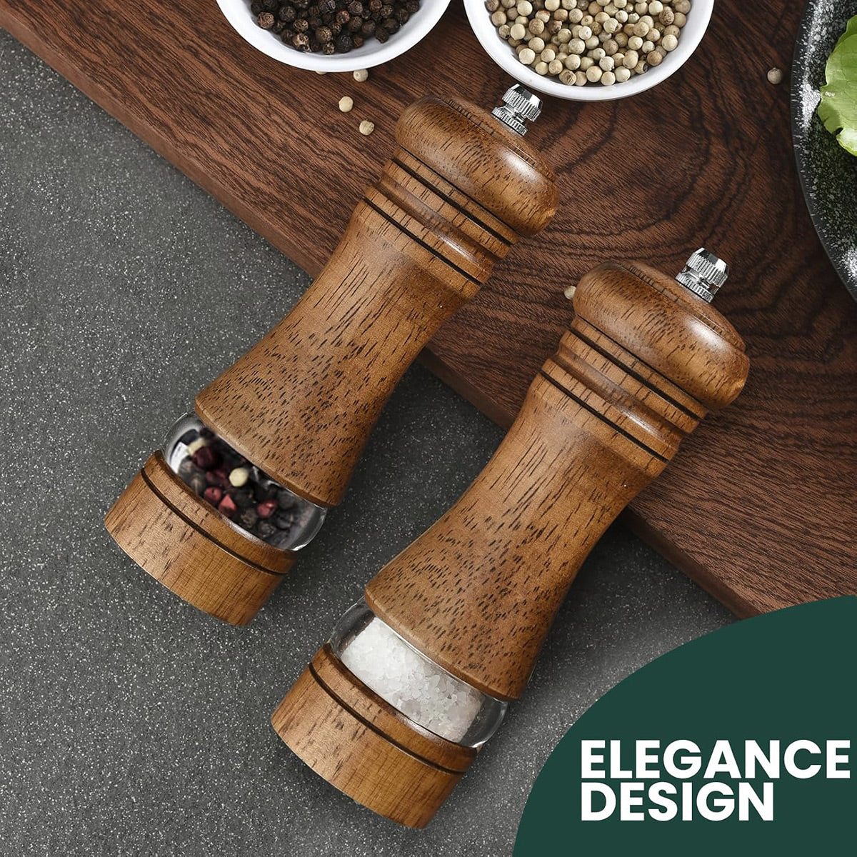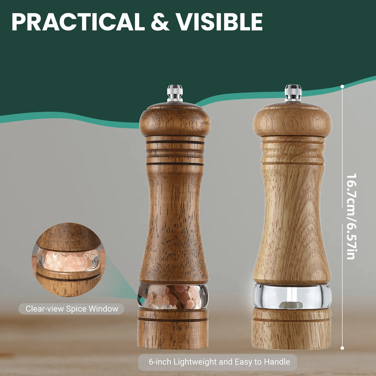 Wood Pepper Grinder Manual Ceramic Core Acrylic Transparent Salt Spice Mill Set
