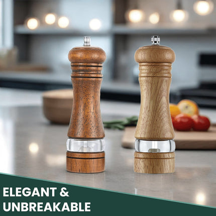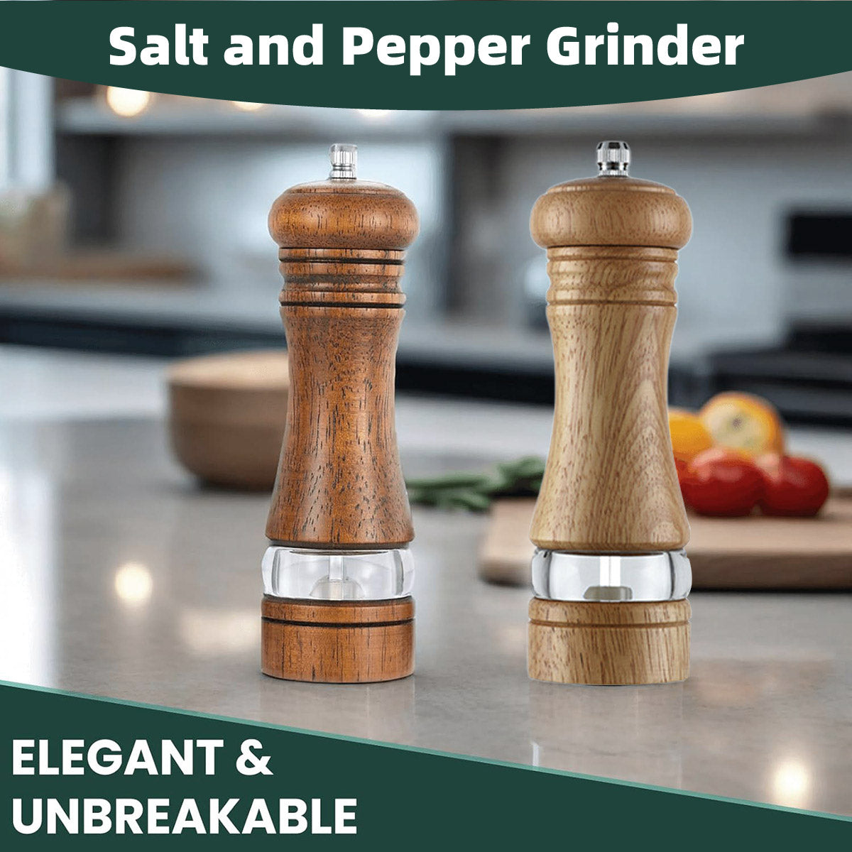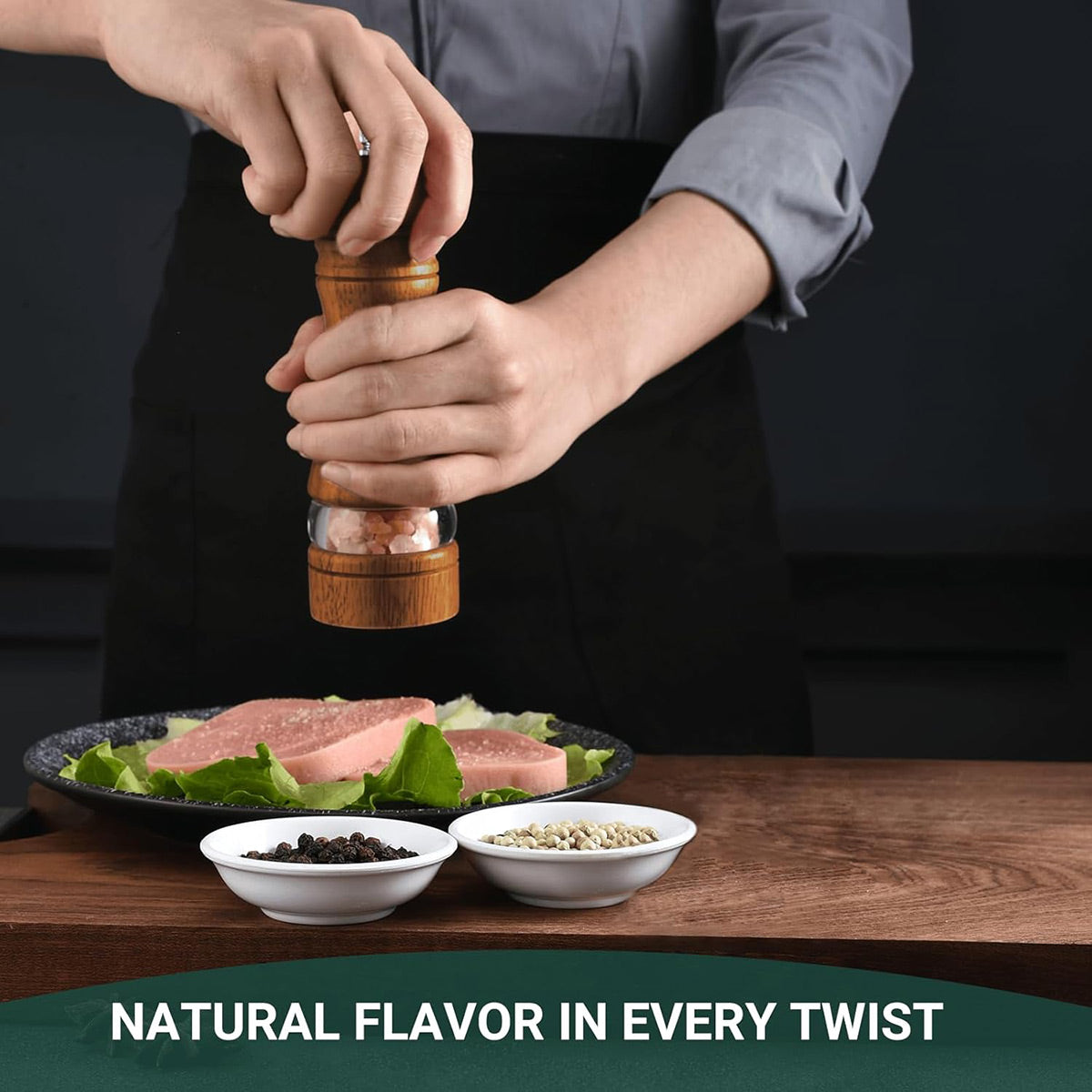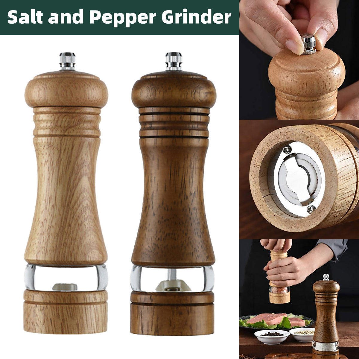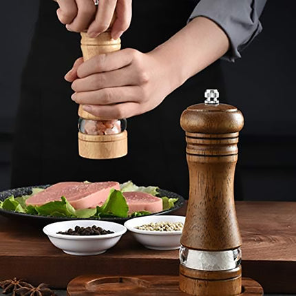 Wood Pepper Grinder Manual Ceramic Core Acrylic Transparent Salt Spice Mill Set