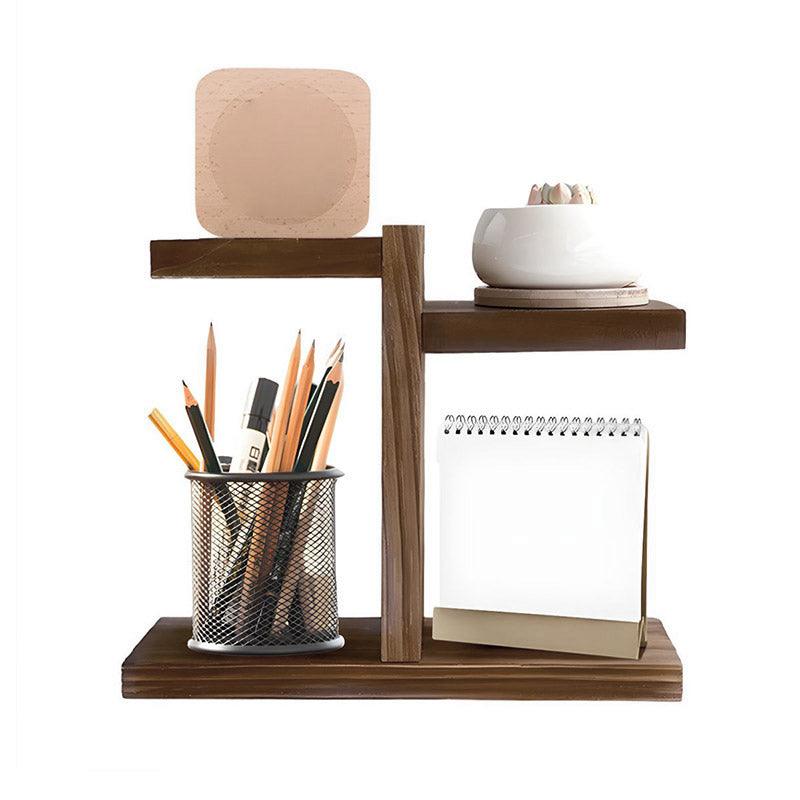 Wooden Desktop Storage Shelf Simple Decorative Flower Stand for Home Office
